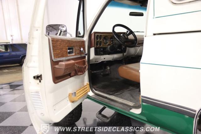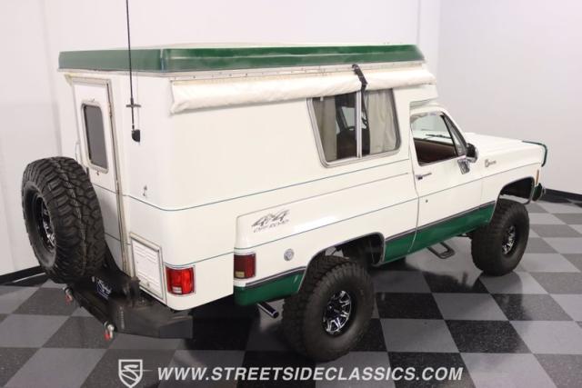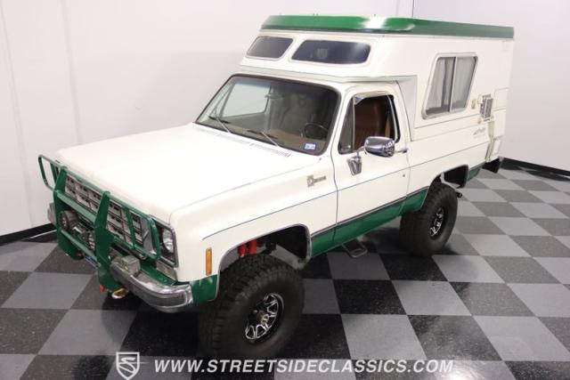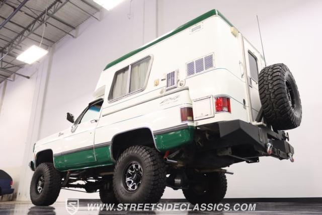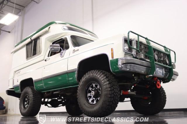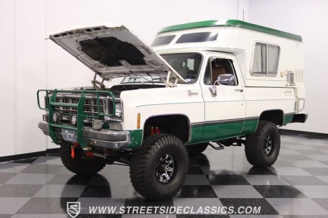 The Chevrolet Blazer Chalet and its sibling, the GMC Jimmy Casa Grande, were only built in 1976 and 1977 by General Motors in partnership with Chinnook Mobile. This 1976 Chevrolet Blazer Chalet 4x4 is number 258 out of approximately 1700 produced during their two-year run. This rare camper is equipped with many of the comforts of home, including propane gas two-burner stove, heater and domestic refrigerator that can run off a generator when the truck is plugged in. There are also four 110 outlets for a coffee maker, fans and other electrical items. A ten-gallon water fresh water tank with an electric pump is onboard to provide water for the sink. The couches fold down to create a sleeping area and the top can be raised three feet to allow more living space as well as two bunks to sleep in. A Kenwood stereo AM/FM/CD player with roof mounted speakers provide music for long distance cruising or just relaxing when parked. A Cobra CB radio is also onboard. The air conditioning system blows cold and has been updated with R134.