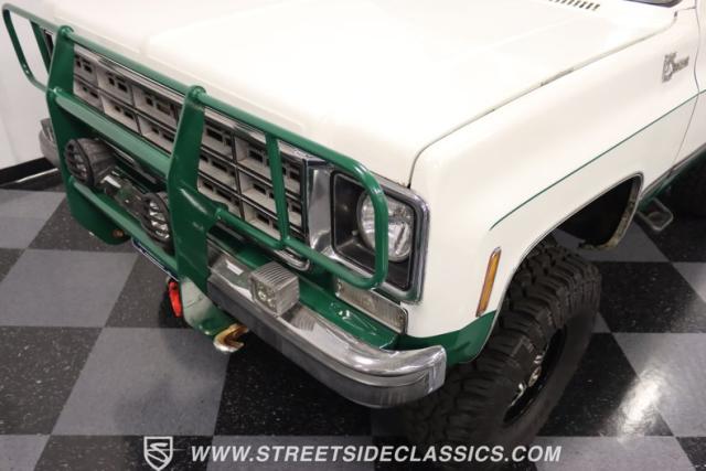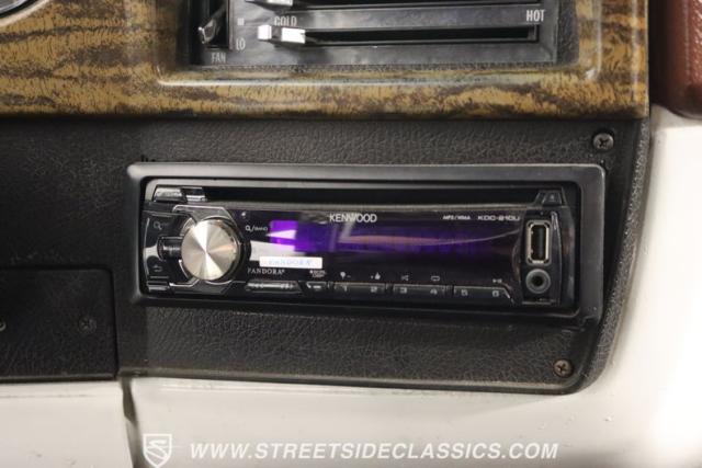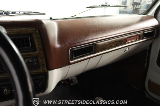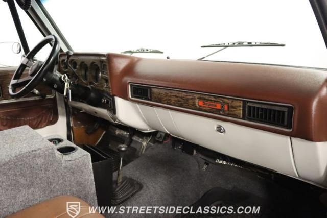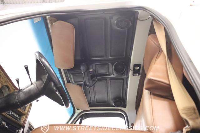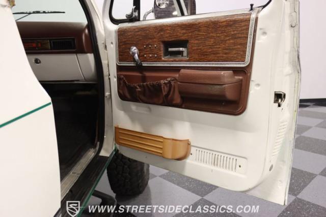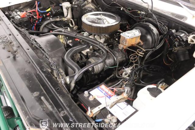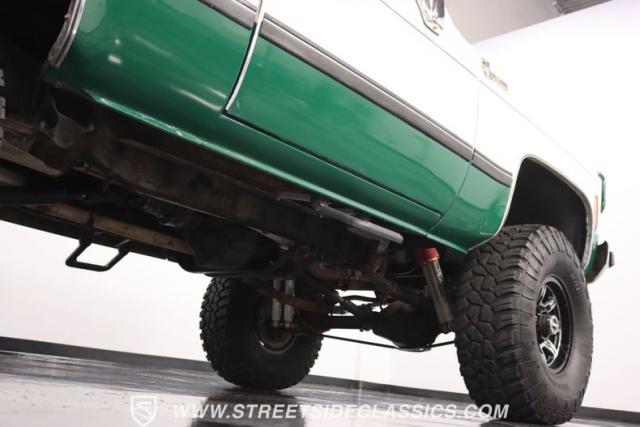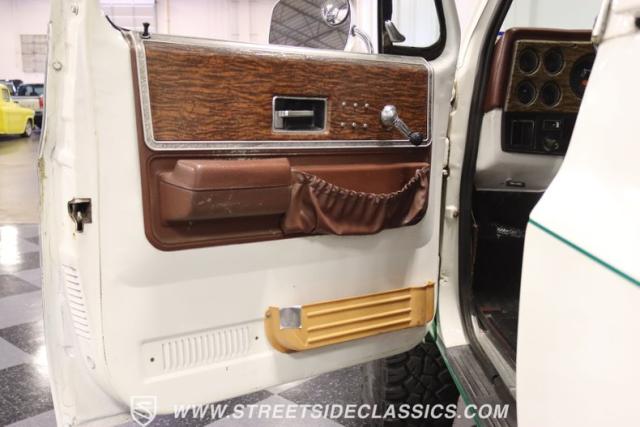 Painted attractively in white and green, some of the exterior upgrades include a 6-inch Rough Country lift kit with double shocks up front, air bags in the rear and a period correct grill guard with four LED off-road lights. The front axle has a truss support and the rear axle has a large TEC sway bar installed. Additionally, a Monster 12000 synthetic rope winch with remote is installed on the front frame rails. The custom rear bumper features LED lights and a swing away spare tire. Rolling on black Ultra Motorsports wheels wrapped with beefy General Grabber tires, this is a great looking truck.