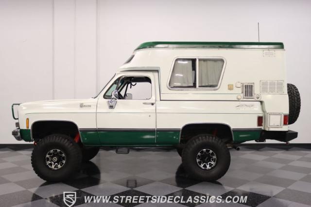 Powering this cool camper is a 350 cubic inch GM performance crate engine mated to a rebuilt TH350 transmission rebuilt in 2018. The truck has been driven only about 3,000 miles since the mechanical work was completed and runs great. The engine features an aluminum Jegs intake, Edelbrock carburetor, big block aluminum radiator and long tube headers with dual exhaust. This well maintained, rare and interesting 1976 Chevrolet Blazer Chalet 4x4 camper is ready for your next adventure - on or off road - in style. Call today!