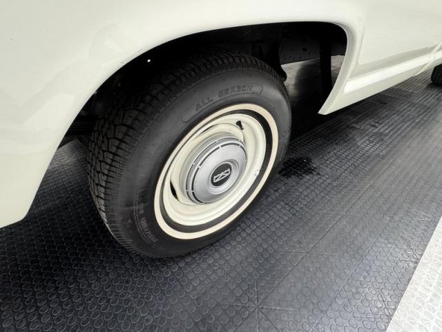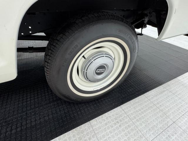 It\'s more driver quality underneath with there\'s some surface rust and some oil on the pan and crossmember. Beyond that, things are relatively clean. Four wheel drum brakes are on hand and suspension consists of coil springs up front and leaf springs in back. A single exhaust runs through a FlowMaster muffler and exits through a tip behind the right rear tire.
