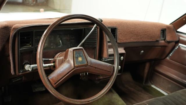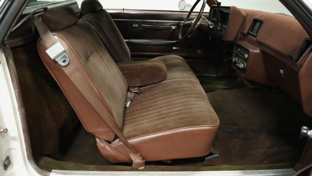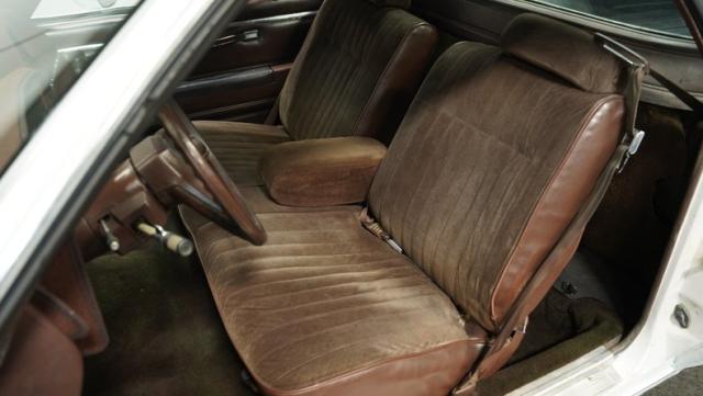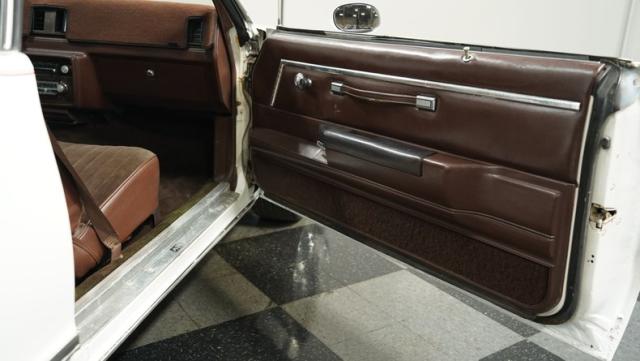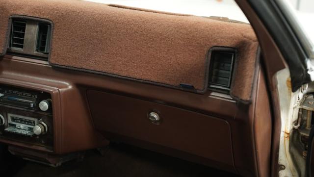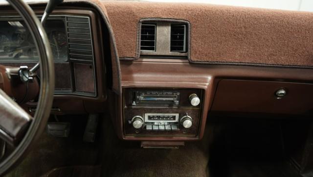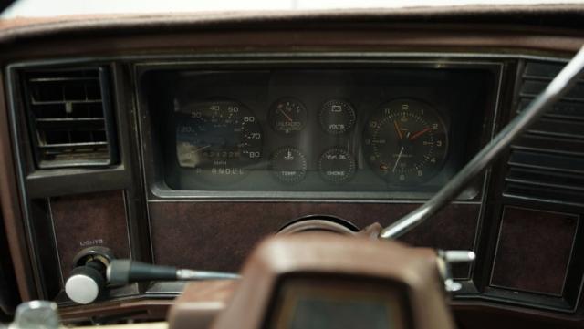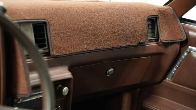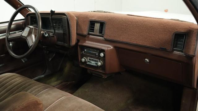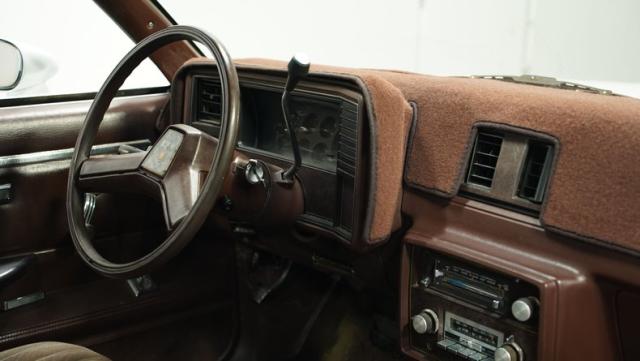 Within, the interior unfolds in a rich brown hue, from the plush cloth of the bench seat to the well-maintained door panels and dash pad. The gauge cluster, clear visibility and an operational clock, ensures vital information is always at a glance. Door panels and carpets, preserved in good condition, contribute to the overall sense of care and attention this vehicle has received. With air conditioning making every journey pleasant, while an AM/FM radio stands ready to serenade occupants.