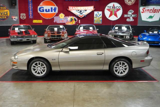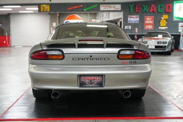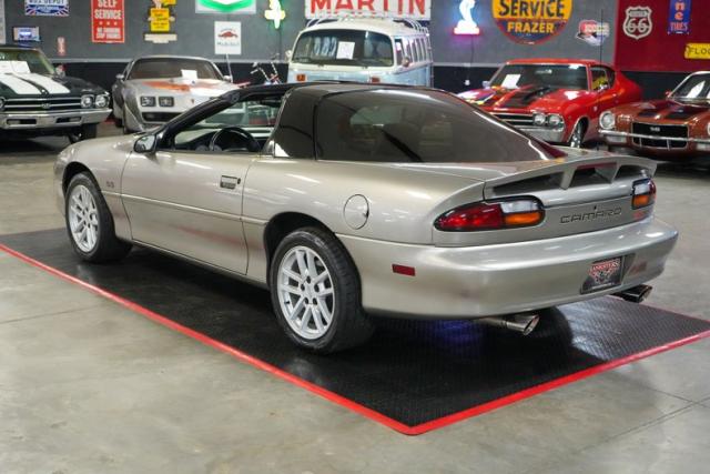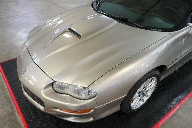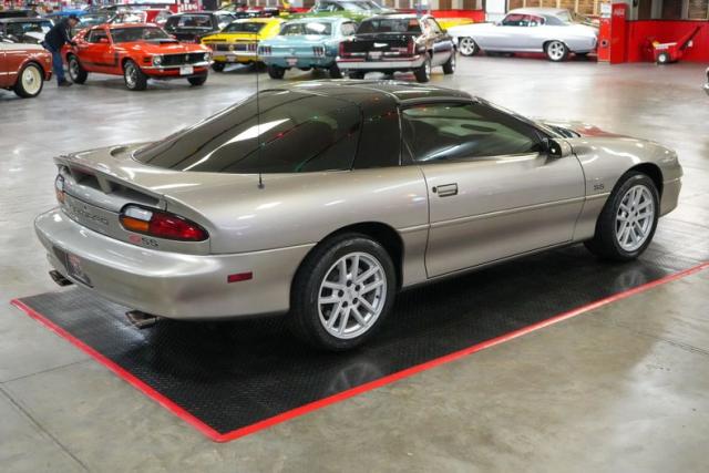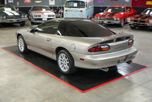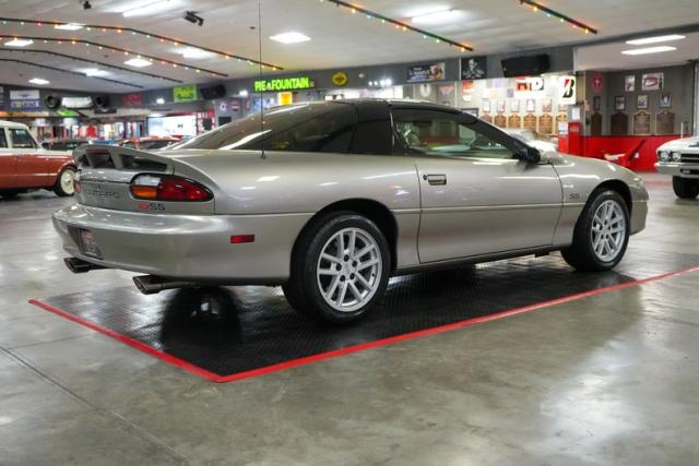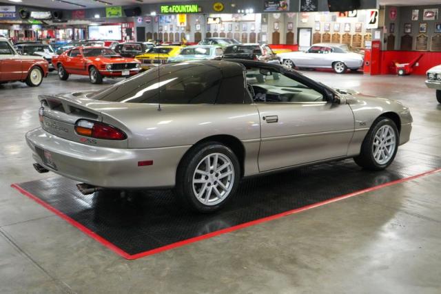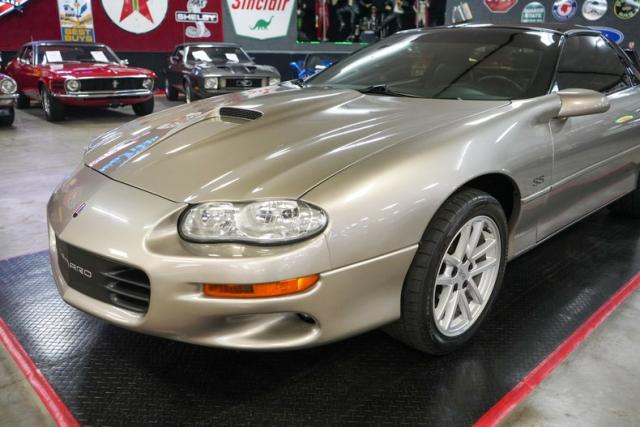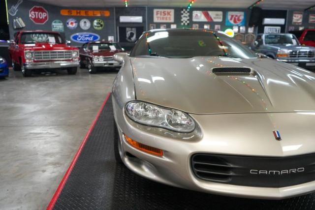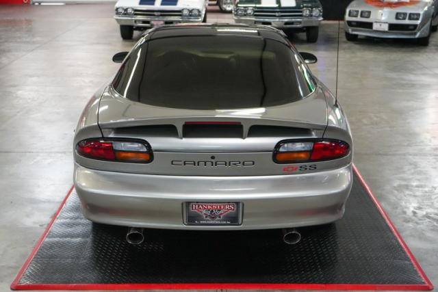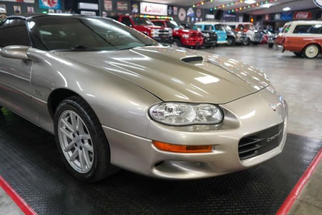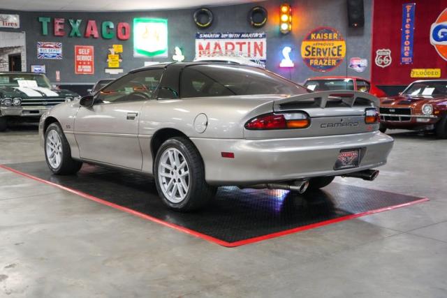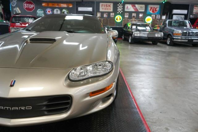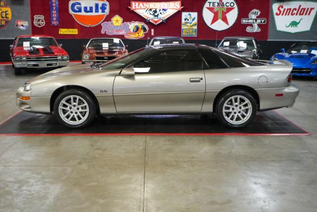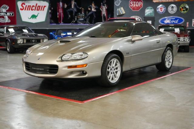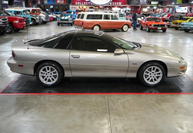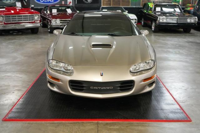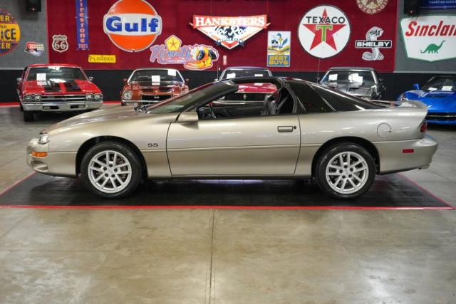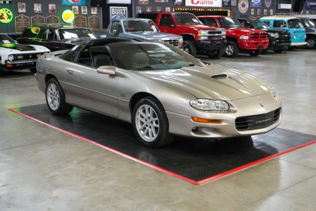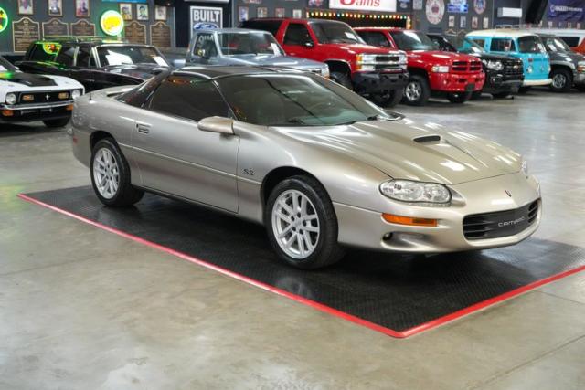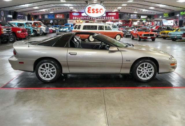 This 2000 Chevrolet Camaro SS delivers true fourth-gen muscle with its legendary 5.7L LS1 V8 paired to a T-56 6-speed manual transmission. Power is sent through a GM 10-bolt POSI rear with 3.42 gears, providing strong acceleration and confident traction. Finished in Light Pewter Metallic over a black leather interior, it features T-tops, air conditioning, power windows, locks, steering, and four-wheel disc brakes. Riding on 17-inch OEM aluminum wheels wrapped in 275/40R17 Bridgestone Potenza RE760 Sport tires, this SS combines factory electronic fuel injection reliability with raw LS1 performance for an engaging, driver-focused modern classic experience.