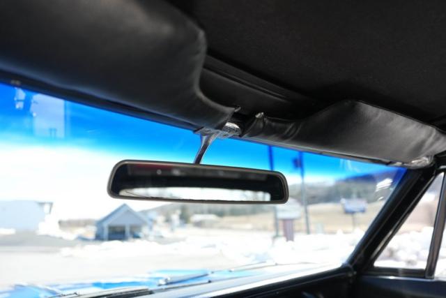 Inside, you\'ll find a black vinyl bucket seat interior with console (code 813), aftermarket gauges for oil, water, and amps, and a period-correct sporty layout. A white power top completes the look, making this Impala SS perfect for top-down summer cruising.