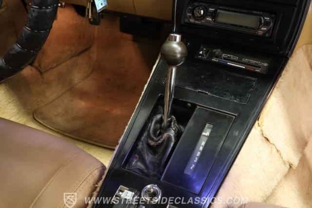 Pop off the T-tops, and inside you\'ll find a nicely redone tan vinyl interior. A center console separates a pair of plush yet supportive bucket seats, while a power-assisted three-spoke steering wheel sits just ahead of a dual pod analog gauge cluster featuring an 85 mph speedometer and a 7,000 rpm tachometer. A five-pod auxiliary gauge cluster sits high atop the center stack, while power locks, windows, seats, and mirrors provide all the amenities anyone could want in the early 1982s. An upgraded AM/FM/AUX Sony head unit offers far more entertainment options than its predecessor. The dreaded vacuum operated headlights have been upgraded to electric powered motors.