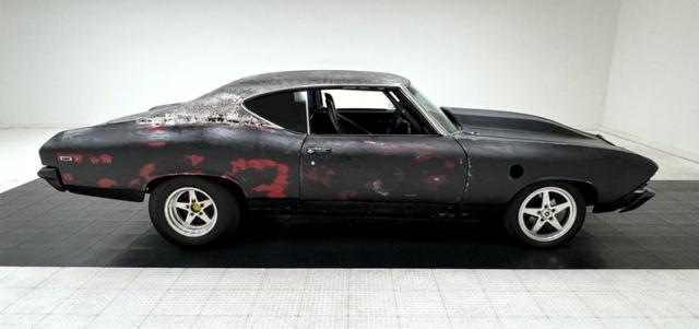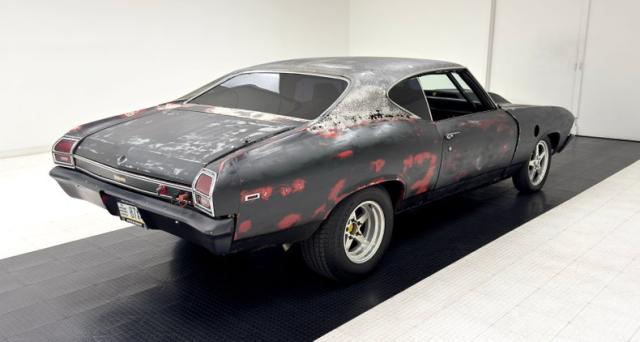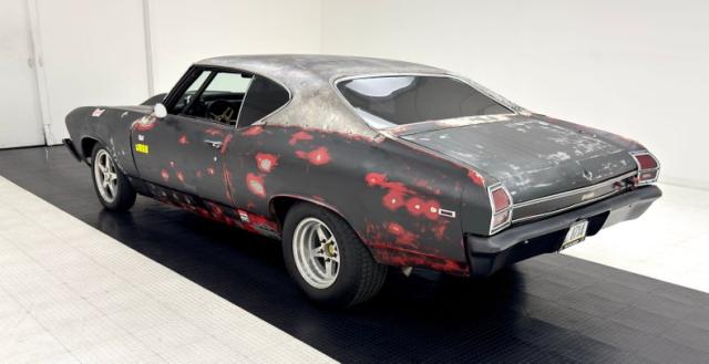 For consignment, a 1969 Chevrolet Malibue Chevelle hardtop showing 7,086 miles, but the true miles are unknown. This veteran of the Atco Raceway has some bumps and bruises but don\'t completely judge a book by its cover, this one has a clean 350ci V8 under the hood and a modified turbo hydramatic behind it!