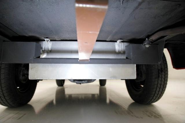 No runs drips or errors and even no rust under here as it has been meticulously restored. Leaf spring suspension is seen fore and aft, and mechanically actuated drum brakes are noted on all 4\'s. A stock style single exhaust system is on to handle spent fossil removal.