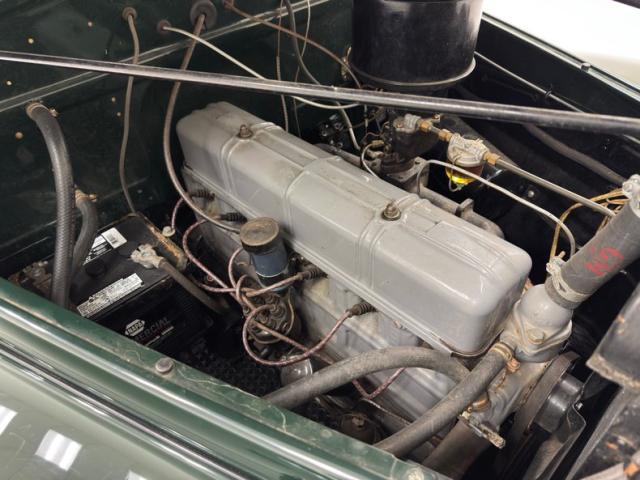 Under the hood is a driver quality engine with patina and surface rust but overall free of debris. It\'s a 216.5ci inline 6 cylinder with a 1-barrel carburetor rated at 85 horsepower. It is tied to a 3-speed manual transmission shifted on the tree, which sends power to the rear wheels and 3.73 gears. Drum brakes were standard, and they are present here.