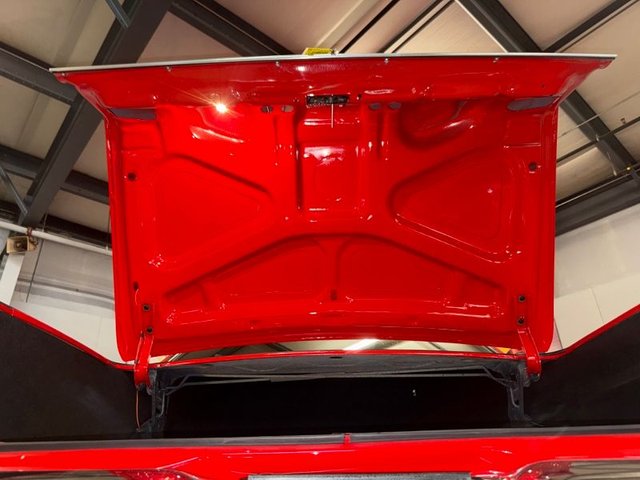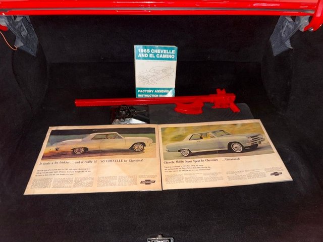 The trunk is boxed in with black carpet and beautiful. Jack, kill switch, literature in trunk, assembly manual, owner guide, trunk light. Looks new!