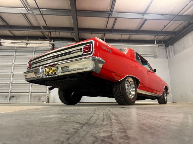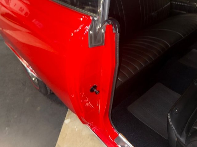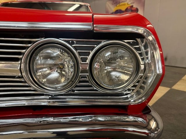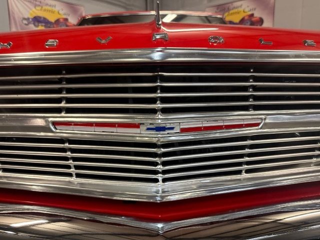 Painted a beautiful Red that is slick and straight, front and rear bumpers are like new. The grill and headlight trim, parking lights, tail lights, backup lights, trunk trim, all the emblems all are like new. The wheel well moldings are like new, Rocker panels also like new. The hood trim, window trim, glass is tinted and all are like new. The rubber and felt are like new. The wiper arms are polished and blades like new. The drip rail moldings are like new. Rally rims, trim ring, center caps with BF Goodrich silver town radials like new. Dual outside mirrors with Chevy logo like new. Door rubber bumpers. The door handles like new. This car sits right and looks great. A real attention getter!