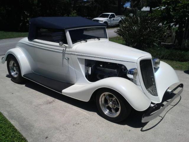 34 Ford Convertible Street Rod glass body, 350 / 350. Chevrolet ZZ3 crate motor 345 HP, automatic transmission, heat and air, glacier white pearl paint. Garage kept. Seldom driven. Paint, upholstery and new top done in 2012. Actual mileage is unknown but approximately 20k miles on the engine. Please Note: I drove the car today for the first time in several months, and started getting blue smoke from the exhaust. Found the number one plug on the left side had oil on it. I\'m taking a wild guess and thinking maybe valve seals on that cylinder, but it could be something else.condition: excellent cylinders: 8 cylinders drive: rwd fuel: gas odometer: 20000 paint color: white title status: clean transmission: automatic type: convertible odometer broken Please Note The Following **Vehicle Location is at our clients home and Not In Cadillac, Michigan. **We do have a showroom with about 25 cars that is by appointment only **Please Call First and talk to one of our reps at 231-468-2809 EXT 1 ** FREE Consignment Visit Our Site Today Easy To List Your Vehicle and Get it Sold in Record Time.