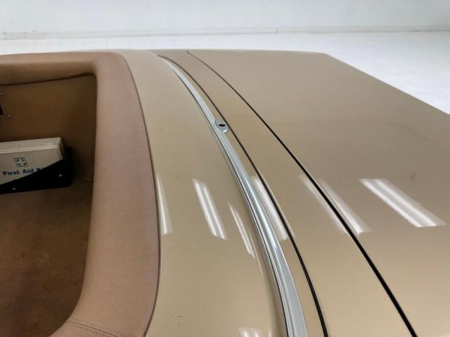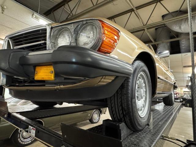 Mercedes calls this Champagne Metallic which may be commonly referred to as gold, and would be at home in the Napa Valley, Beverly Hills, Oskaloosa Iowa, Elizabethton Tennessee, or anywhere in between. In other words, the iconic exterior design of this car is fantastic and would look great in your garage no matter where you reside! The matching hardtop provides all weather coverage while the brown canvas top, which is newer, allows for some quick decisions based on changing weather. Yes, this car and its foldable top is the antidote for climate change! SL\'s have narrow body lines and flat horizontal surfaces that lower the center of gravity create the great handling they\'re known for. Long nose, low rear wheel opening, square tails, and classic Mercedes lights are instantly recognizable. Imperfections include a scuff, a chip in the paint on an upper surface, a scratch on the hard tonneau, a drip pattern stain on the front apron, and some random chips.