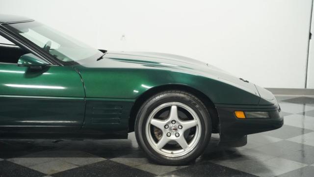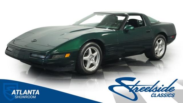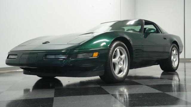 From the track to the street, this 1993 Chevrolet Corvette carries 40 years of racing DNA in its veins. Showcasing a menacing Polo Green II Metallic finish, this C4 flexes pure muscle with performance-focused ZR-1 wheels - 17-inch warriors wrapped in aggressive 255/45ZR17 front and 285/40ZR17 rear rubber. The low-slung aerodynamic profile cuts through air like a fighter jet, while every curve and angle screams pure American performance. With only 32,369 original miles, this street predator is locked and loaded.