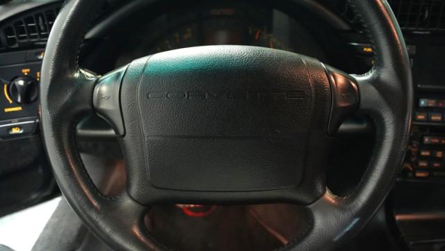 The black leather cockpit means serious business. Competition-ready sport bucket seats with exclusive 40th anniversary stitching lock you into position for maximum control. Your right hand falls naturally to the manual shifter, positioned perfectly in the center console for rapid-fire gear changes. Power steering provides surgical precision, while the air conditioning keeps you cool during intense driving sessions. The AM/FM CD player supplies the soundtrack for your next high-performance run.