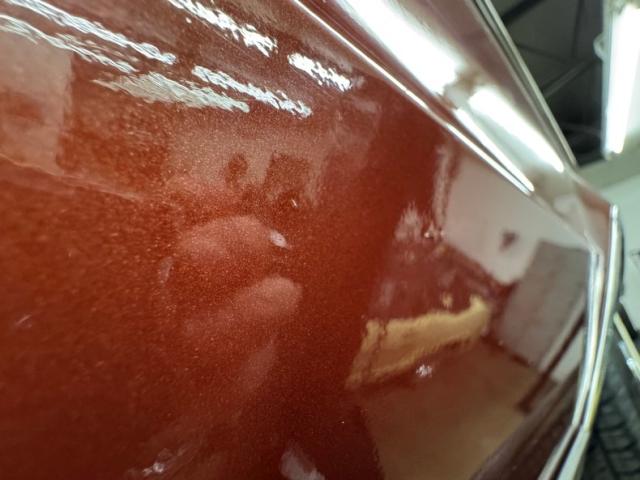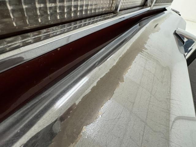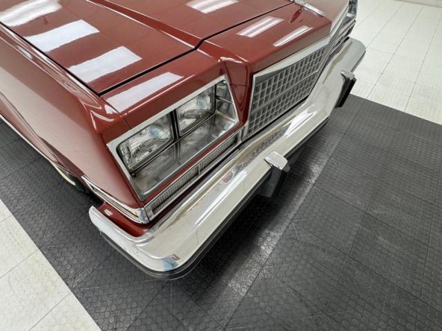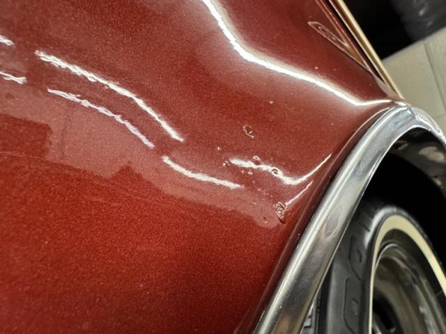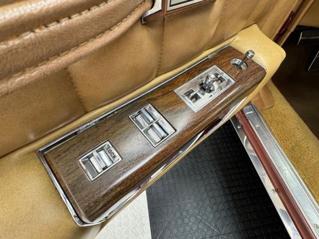 The car was treated to a respray in its original color, a coppery red called Saffron by GM, and overall the coverage of the long paneled car is in good condition. A decade earlier, the Electra was one of the longest cars on the road and this \'78 is no slouch, coming in at a tick under 225 inches. In profile, the body is accentuated by the offset tan vinyl landau top that covers the back half and fixed rear windows, and by the faux fender vents, a legacy holdover from the ventiports of the 50\'s. Up front, the face is handsome and broad, sharing qualities of the entire Buick lineup while in back, the Electra wears tail lights that stretch the width and meet at the license plate. Big chrome bumpers prevail and 15-inch Buick Rallye wheels add a touch of sportiness. Exterior imperfections include some de-plating on the chrome bumper, cracks, scratches, blistering, dings, orange peel, and a scuff on the textured rubber trim of the bumper.