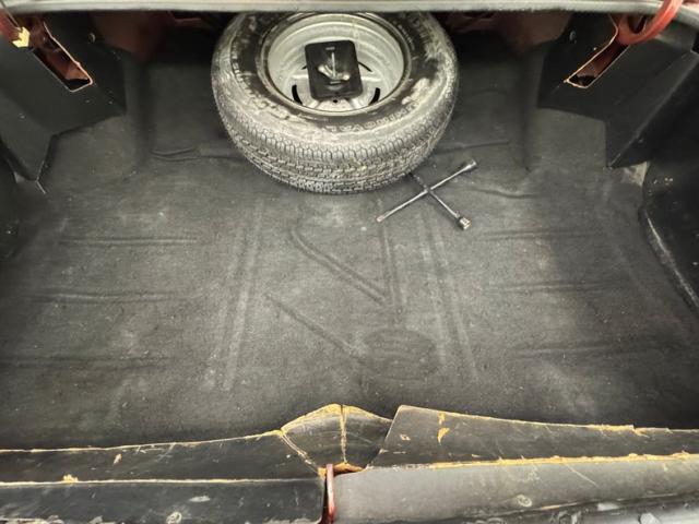 Typical usage and age oxidation underneath but otherwise clean and solid. A single exhaust holds a stock style muffler and exits discreetly out back. We have power disc brakes up front and power drum in back with coil springs at all four corners and a 4 link suspension in back. While on the lift, we note some rust on the bottom of the doors, particularly the driver\'s side where advanced surface rust extends the length of the door.