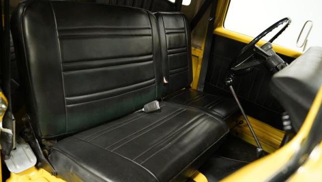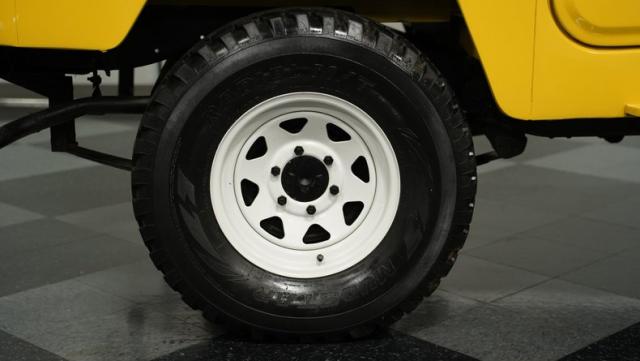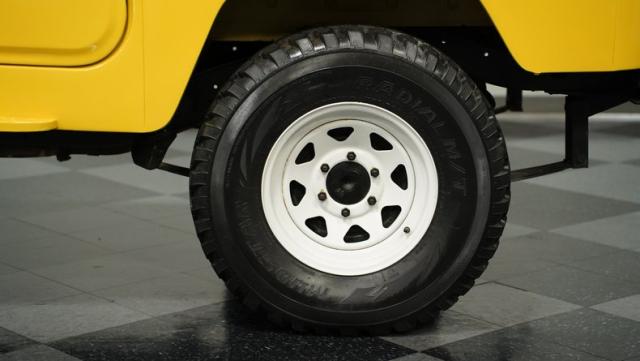 Engineered for performance and reliability, the Land Cruiser features a solid combination of strong mechanical components and a functional design. Its 4-speed manual transmission enhances the power of the engine, making it both dynamic and dependable. Inside, the FJ40 is straightforward and practical, with black vinyl split-bench seating that\'s ready for various adventures. This model is equipped with sturdy 15\" wheels with 31x10.50R15LT tires, including a spare.