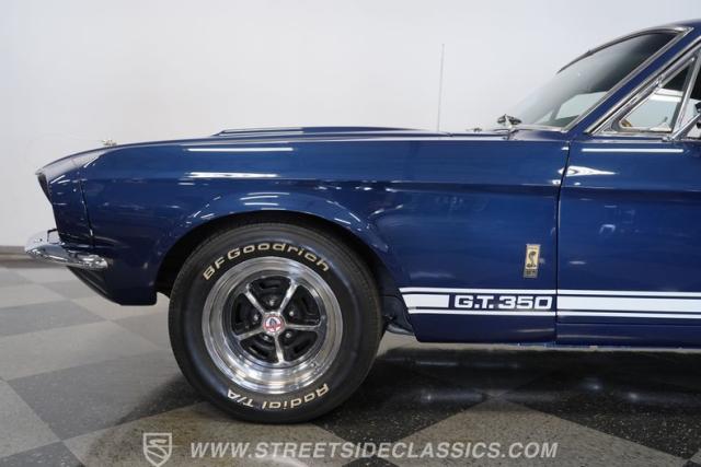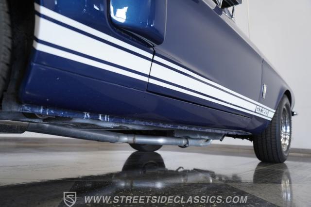 Step inside and immerse yourself in the classic black vinyl interior, featuring factory-style bucket seats up front and a matching rear bench. The cockpit is highlighted by a Shelby-branded steering wheel and a floor-mounted shifter, making every shift feel purposeful. The factory dashboard, complete with a Shelby GT350 emblem, preserves the authentic vibe, while the clean carpet and well-kept headliner add to the inviting, driver-focused atmosphere. Rear 6x9 speakers enhance your favorite tunes, making each cruise a pleasure.