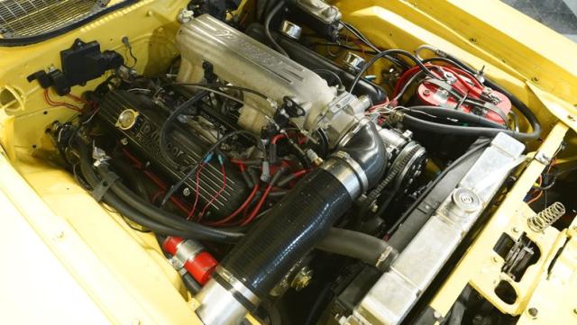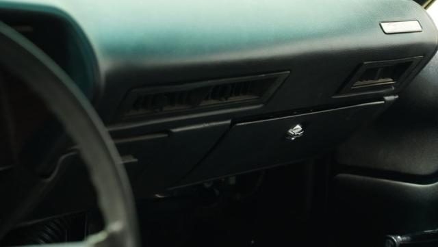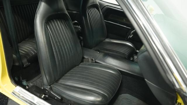 Black dominates the interior, creating a focused environment. Vinyl bucket seats flank a center console, emphasizing the car\'s performance heritage. The dashboard features clear, legible gauges that keep vital information within easy view. An AM/FM single CD player with AUX input provides audio options for any drive. Air conditioning maintains comfort regardless of outside temperatures. Custom floor mats add a personalized touch to the carefully crafted cabin.