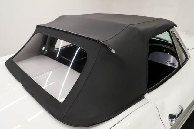 EXTERIOR: The body looks very nice, I don\'t see any damage and it actually lines up exceptionally well. The doors click shut, the retractable headlights work properly. It is repainted its original Ermine White color. It\'s polished very smooth and glossy, there are a few minor imperfections if you look for them. The chrome sparkles: the bezels, grill, emblems, tail lights and rear bumpers look like new. The windshield has been replaced. The black convertible top looks fresh. It\'s modernized with 15 inch Eagle Alloy wheels.