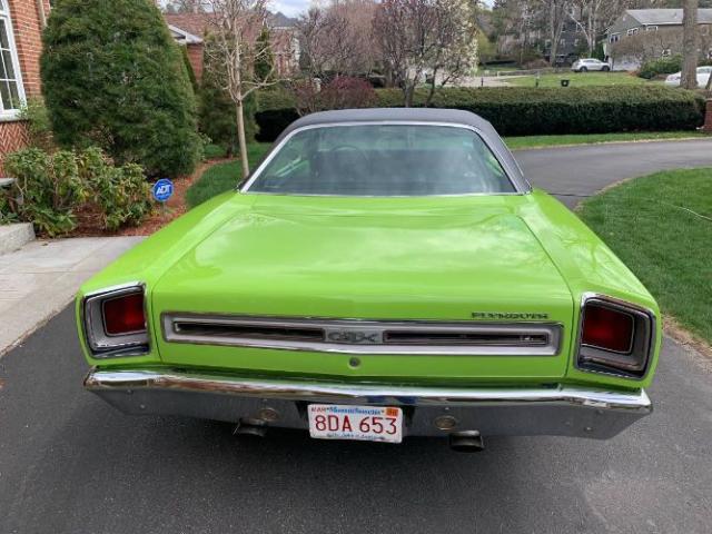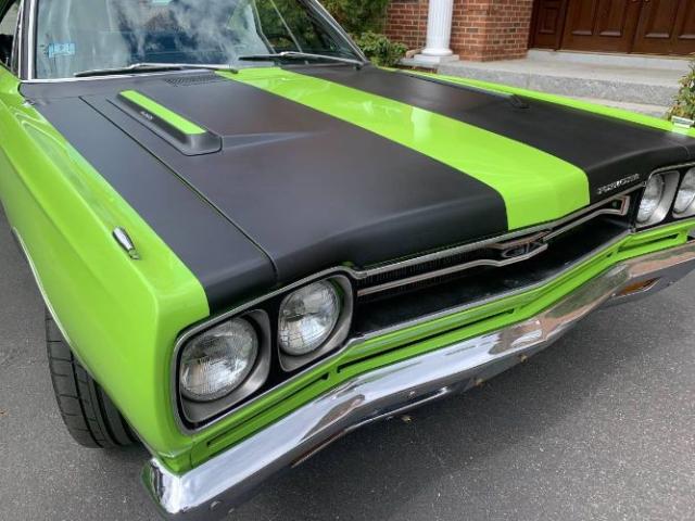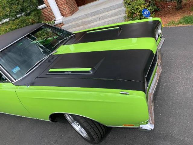 1969 Plymouth GTX, Lime Green, Black Stripes, Black Interior. 512ci. Motor and 727 reverse manual valve body transmission by Dynamic Racing Transmissions. Eaton tru-trac differential with 323 gearing.The original matching numbers 440ci. motor and transmission also included (440 motor is disassembled) 512ci.Motor,Transmission, Be Cool radiator with electric fans and borgeson power steering box and pump all installed new in July 2018 and barely used. Motor has 10.5:1 compression ratio,Comp roller cam, Harland sharp roller rockers and Edelbrock Trick Flow heads. Motor was dyno tuned before install and put out 606hp. and 672ft/lb of torque with a holley 750cfm. carburetor on 93 octane. Under 500 miles, Brand new wheels with Mickey Thompson Street Comp tires. 14 Magnum wheels and tires also included. Have all receipts/dyno sheet. Great performance upgrades, paint shows very well along with great shine, No dings and or surface rust, great body lines, and alignment gaps, car is a solid top to bottom, undercarriage solid along with trunk no surprises, This is a classic great quality GTX, to enjoy and show, draws great attention at all cruise show. Interior very nice with new upholstery seat covers, carpets and headliner. Every thing works including head lamps and back up light. Please Note The Following **Vehicle Location is at our clients home and Not In Cadillac, Michigan. **We do have a showroom with about 25 cars that is by appointment only **Please Call First and talk to one of our reps at 231-468-2809 EXT 1 ** FREE Consignment Visit Our Site Today Easy To List Your Vehicle and Get it Sold in Record Time.