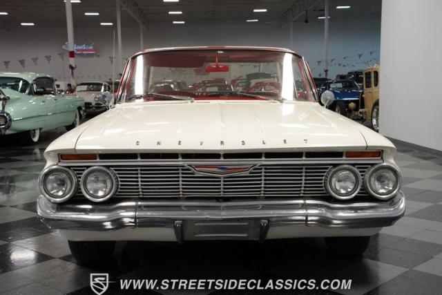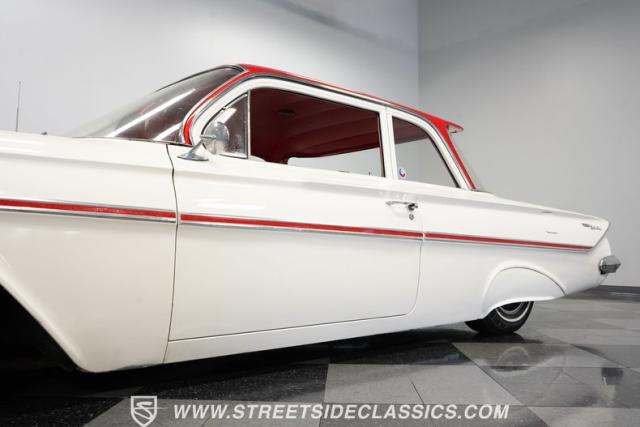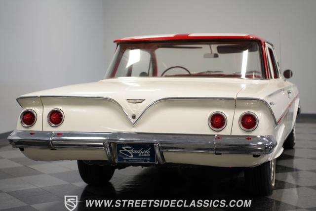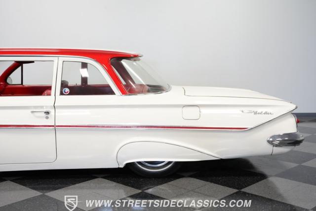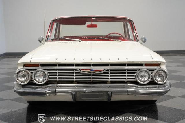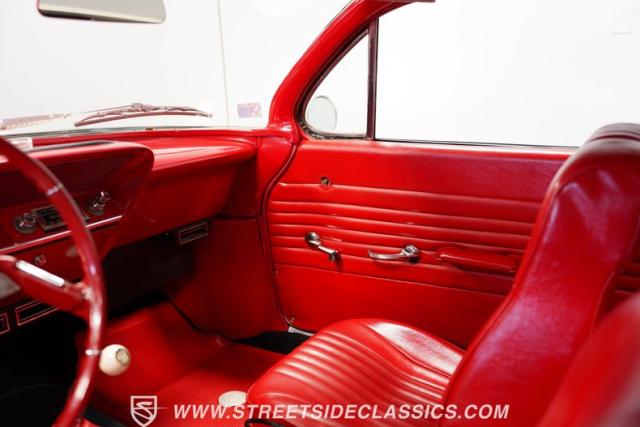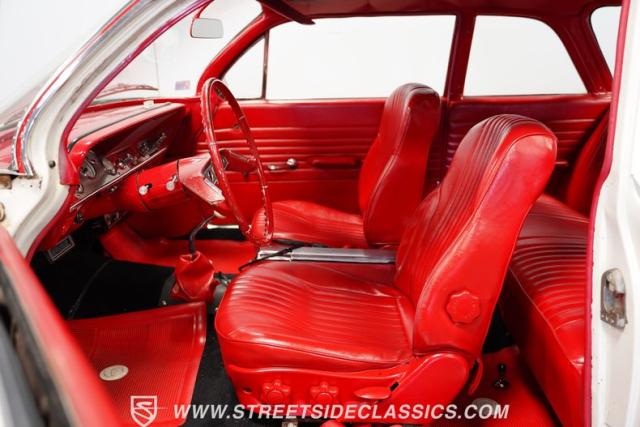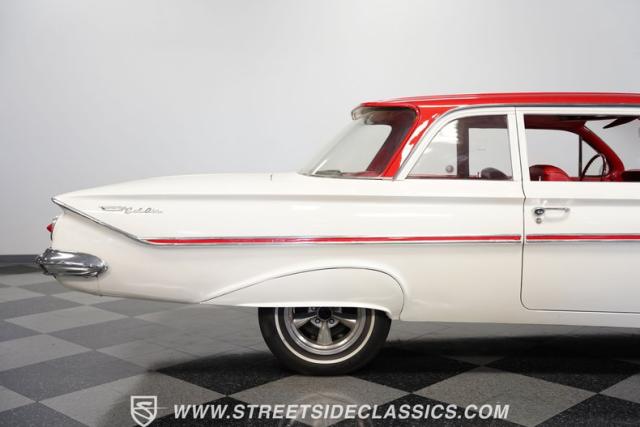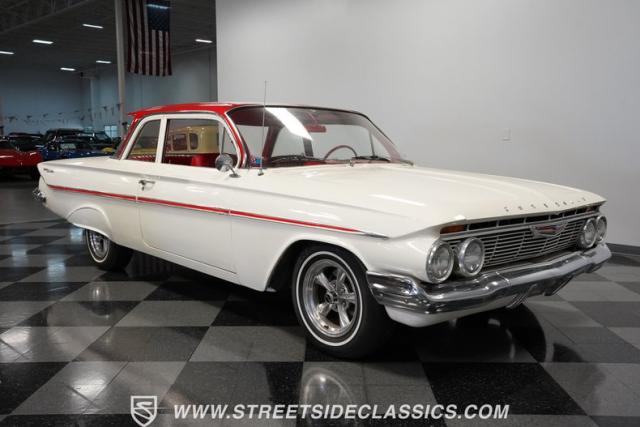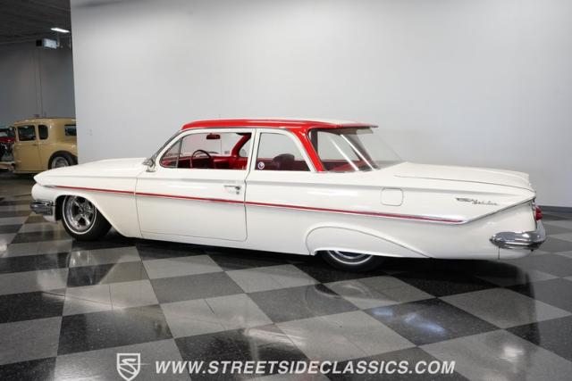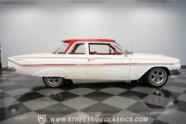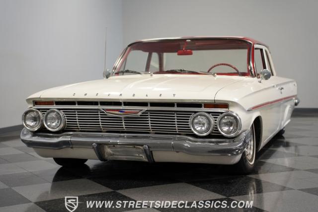 With a color scheme as bold as its personality, this 1961 Chevrolet Bel Air is a \'60s icon that\'s been given a new lease on life. The Ermine White body is accented by a metallic red roof accentuating the car\'s unique rear overhang - a design feature exclusive to the \'61 post coupe and sedan. Completing the look are red-painted stripes, adding a touch of flair to this classic ride. Rolling on chrome 5-spoke Ridler wheels wrapped in thin white wall 205/75R15 tires, this Bel Air has the stance of a true lowrider.