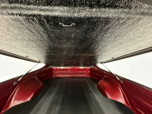 The first thing that hits you, especially if you\'re standing in the middle of the road, is that massive cowl hood that resembles a big red rhinoceros coming at you. And by red, we\'re talking Dark Red Metallic that covers the car in two stage goodness with accompanying pinstripe flames from the fender vents and tri colored retro SS graphics on the door. To smooth the rushing air flow, a color keyed fiberglass bed topper is secured along with a rear wing over the tailgate adorned with pinstriping and an SS decal. The rear chrome bumper has been replaced with an integrated and painted roll pan that absorbs the taillights in flush alignment. The original crosshatch grille has been replaced with a more streamlined version and along with the halo headlights, LED auxiliary lights, and smooth, body colored bumper, presents a futuristic face without losing its early 80\'s disposition. 15-inch Hurricane wheels with staggered size tires create a bit of a rake to the profile and this nose down tail up racer leans forward with anticipation. We could not find any glaring exterior flaws on the SS.