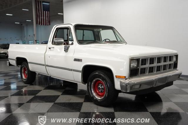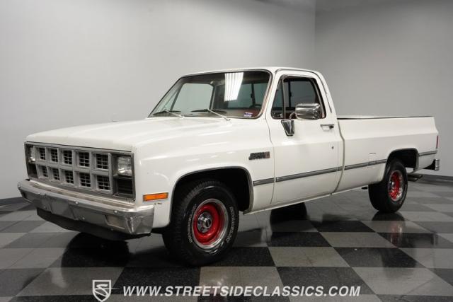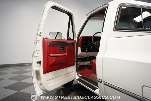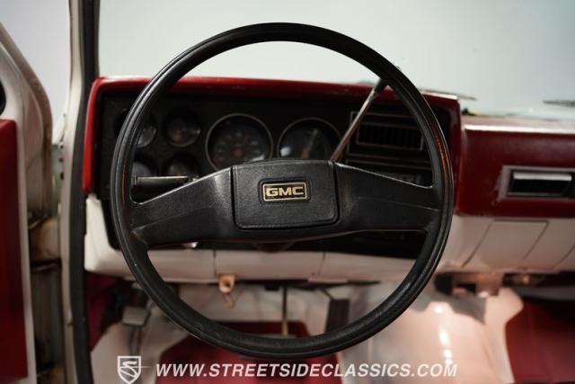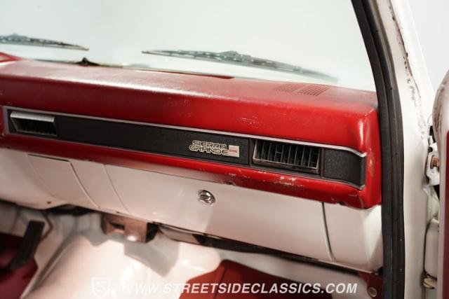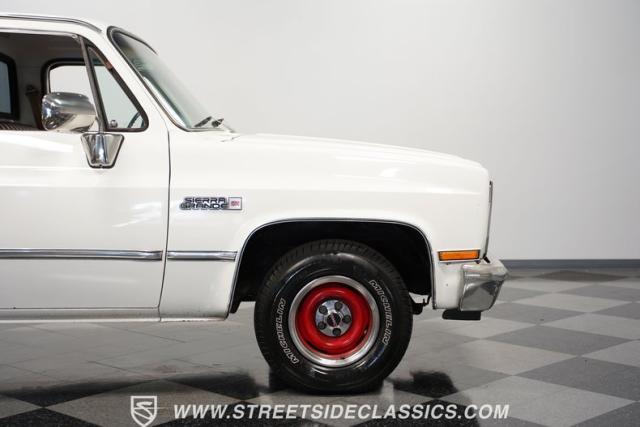 This \'81 GMC Sierra 1500 is a tough-as-nails hauler that\'s weathered four decades on the job. Its white exterior contrasts boldly with the red interior, a combination as classic as a pair of work boots. The long bed isn\'t for show - it\'s built for serious payload. Mounted on 15-inch steel wheels with Michelin 235/75R15 tires, this Sierra Grande 1500 is equipped with a heavy-duty rear bumper and practical sliding rear glass, ready for whatever the workday throws.