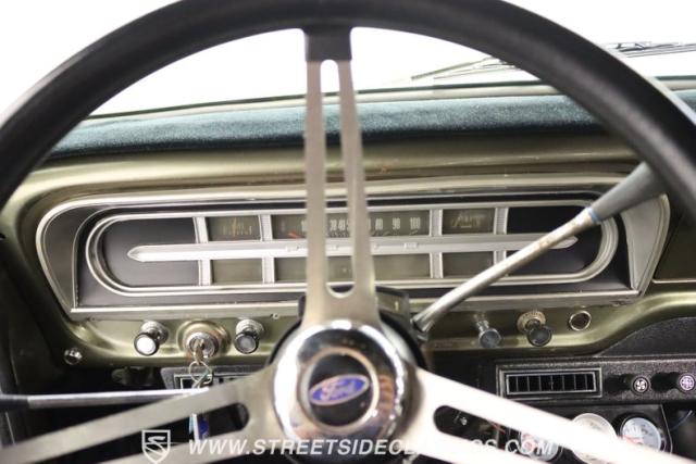 Powering this classic F-100 is a smooth-running 302 V8 engine mated to a column shifted 3-speed automatic transmission that sends power back to a 9-inch rear end. The engine bay is clean and tidy with an Edelbrock carburetor topped with an upgraded open element air cleaner, power steering, power front disc brakes and dual Flowmaster exhaust.