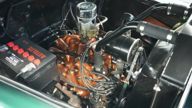 Powering this classic Ford is a rebuilt 239 cubic inch Flathead V8, the 8BA version with a .030 overbore and performance cam for extra grunt. The engine bay is a showcase of both form and function, featuring a new aluminum intake manifold that adds both performance and style. A modern Power Gen generator and an updated Bob Drake sealed bearing unit for the cooling fan bring reliability to the package. The ignition system has been upgraded to electronic for dependable starts, while a brand-new radiator keeps things running cool. Dual exhaust with aftermarket mufflers provides a proper V8 rumble. The drivetrain is completed by the 3-speed manual transmission and a 10-bolt rear end, delivering power to the pavement with classic simplicity.