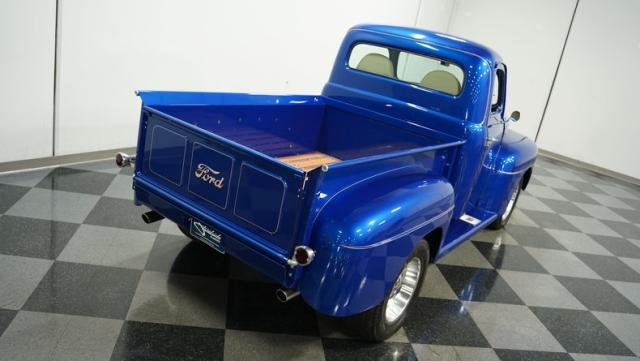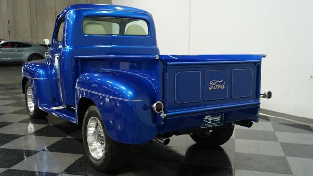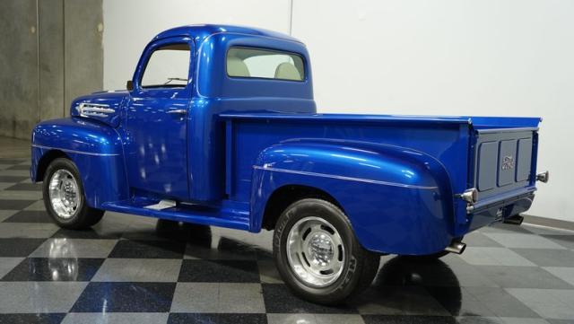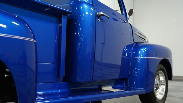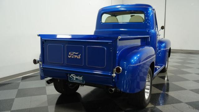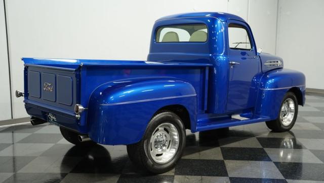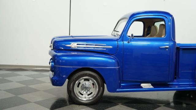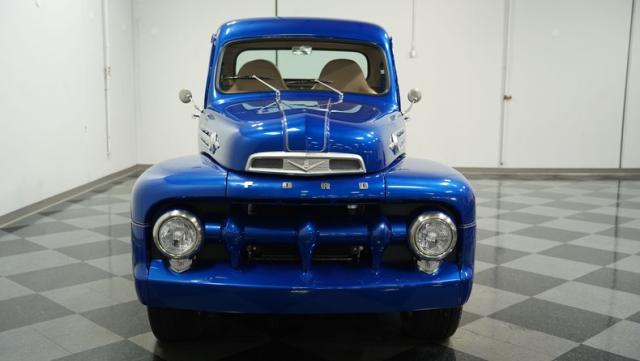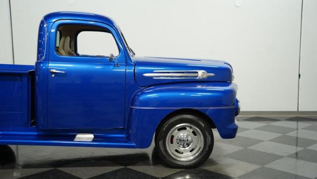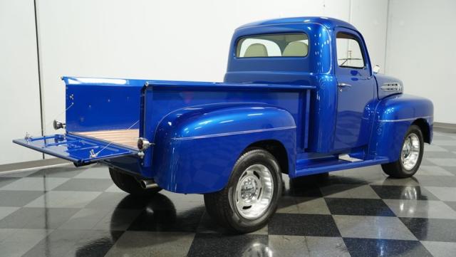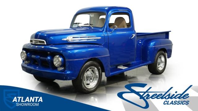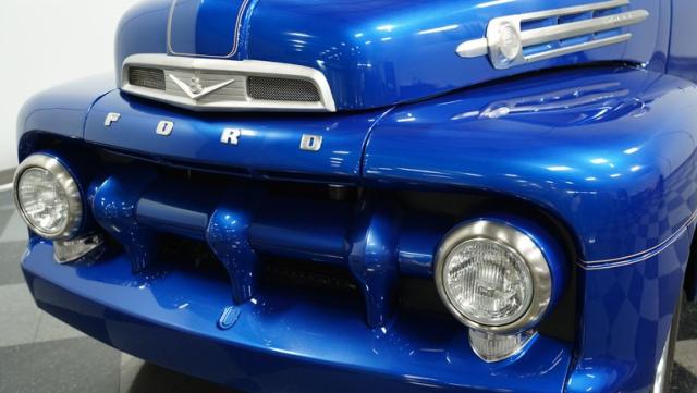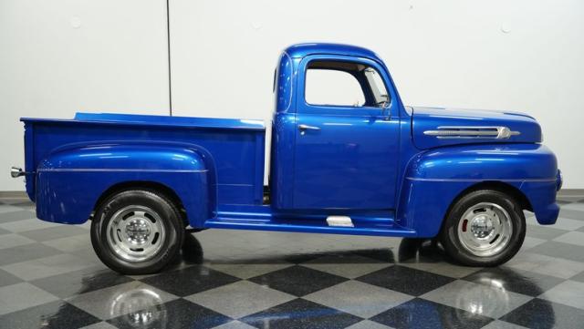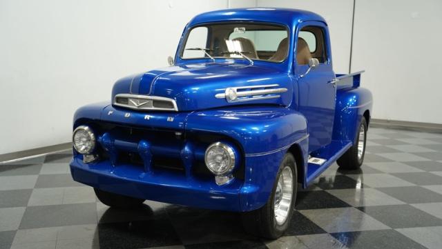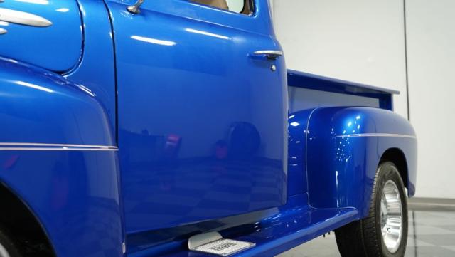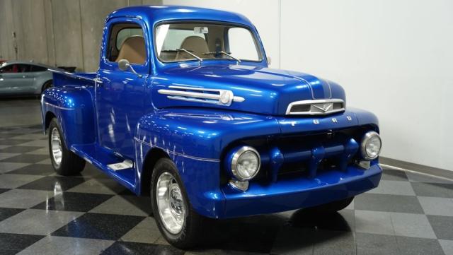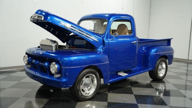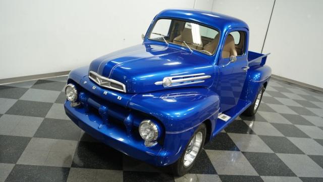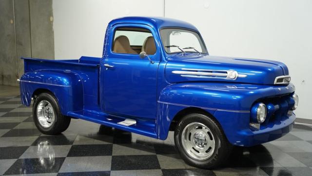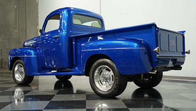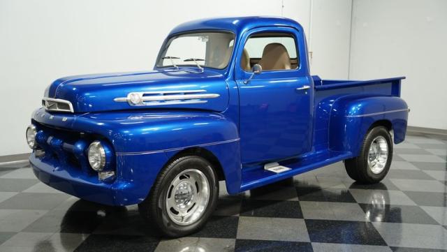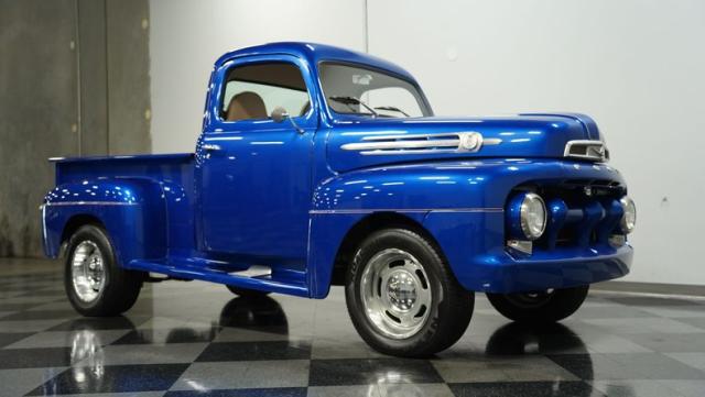 While the newest Ford F-150 may have a twin-turbo hybrid powertrain, as much fun as having the latest and greatest may be, sometimes it\'s far more fun to have older and a bit more special. This brings us to this 1952 Ford F-1 Restomod we have for you today. With just 90 miles on the odometer since being rebuilt, this truck has been resprayed in a gorgeous Blue Metallic with Gold stripes. It rides on seventeen-inch Rallye-style wheels shod in Nexen tires, which hide power disc brakes at all four corners.