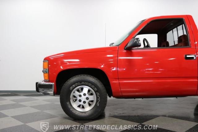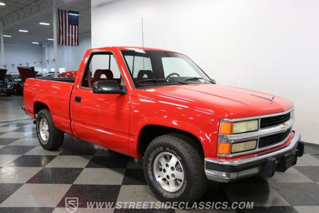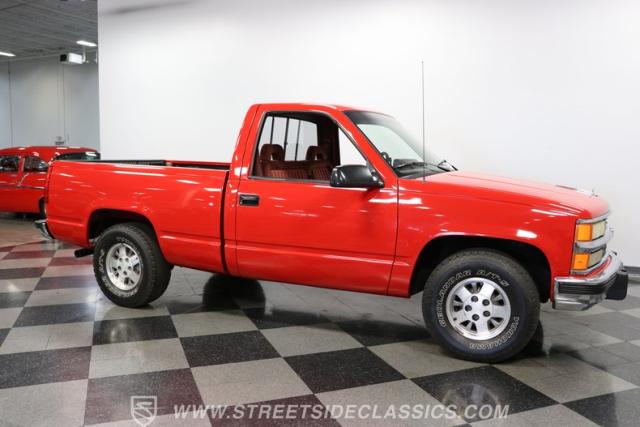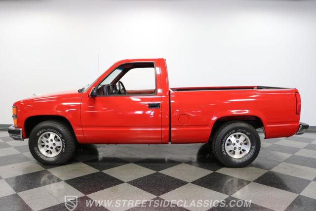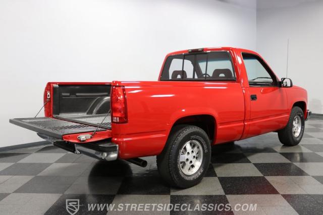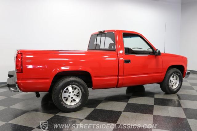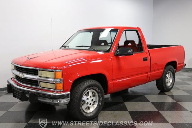 You can tell this truck is something special. Straight body panels, bright bumpers, and a crisp look of quality show that this has been treated with respect over the years. The Victory Red is the correct color, and it was resprayed later in life to remain vibrant without getting too showy. A short bed truck has a hint of sporty style that\'s always in demand, and the optional 15\" alloys add to the appeal. But while this one shows zero signs of ever living a hard life, it\'s still ready to get to work. The full bed liner is a GM branded product. So the impression is that this was a truck that someone spent more on options when new, and so it has remained a well-respected pickup.