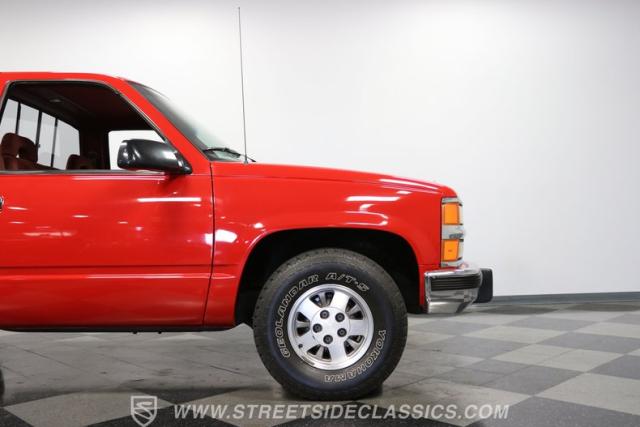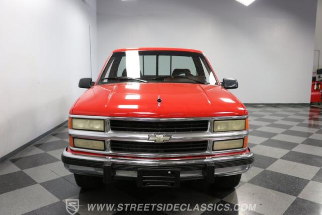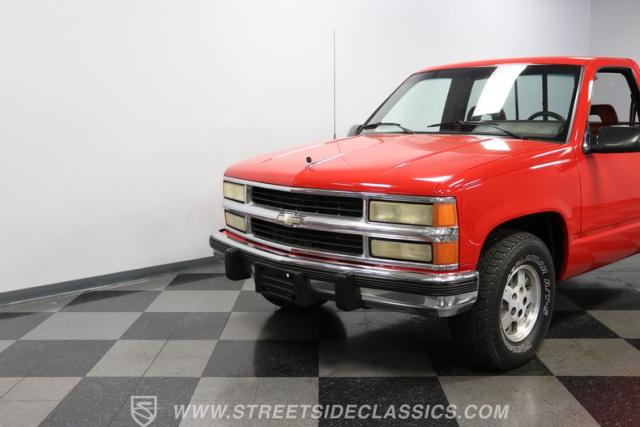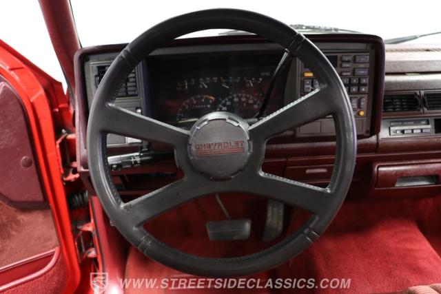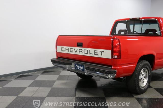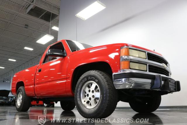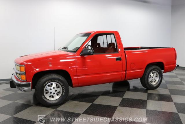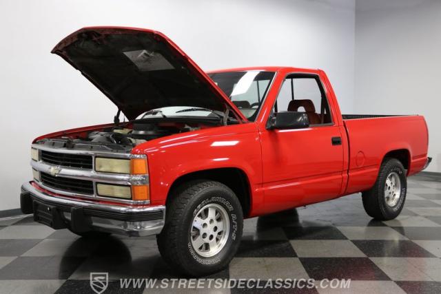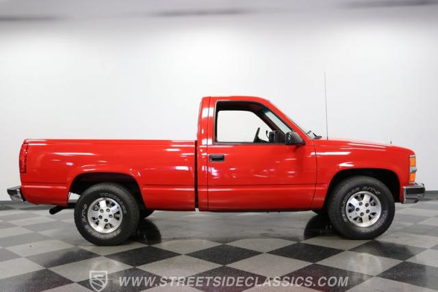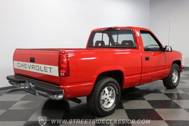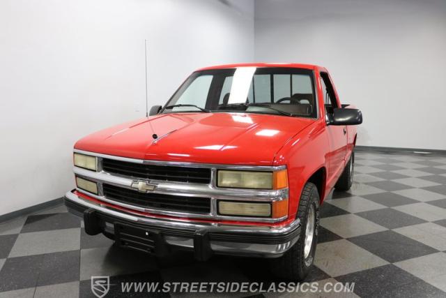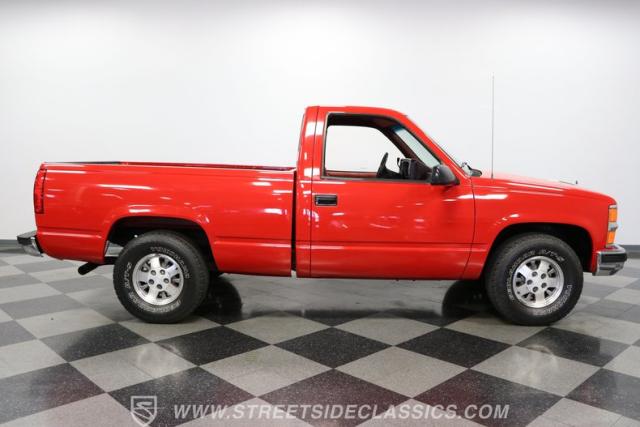 Under the hood is a correct 5.7-liter fuel-injected V8. It\'s unknown if the odometer represents the full actual mileage, but it does have a very stock style, right down to the decals. Chevrolet built this generation Silverado for those who wanted a true cruiser. That\'s why you have the best in any time driving features like power steering, power brakes, front discs, cruise control, and the four-speed automatic transmission w/overdrive.