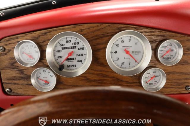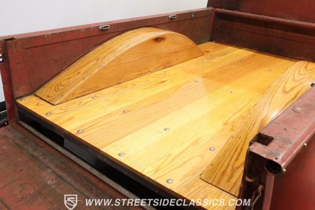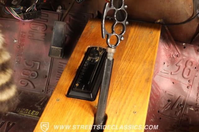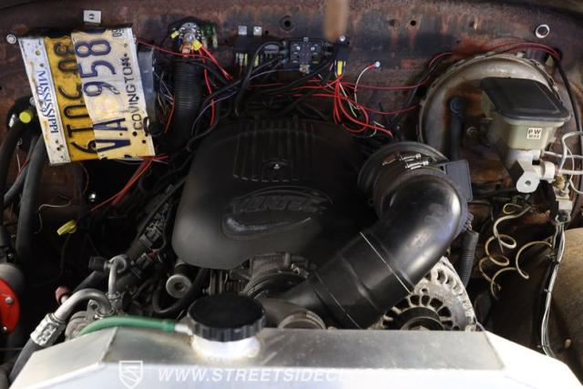 This 1954 Chevrolet 3100 5 Window pickup shows off a unique combination of original Chevy and GMC components, creating a one-of-a-kind custom build. The patina exterior reflects decades of natural aging, while chrome bumpers and grille add contrasting brilliance. The classic stepside bed features quality wood planking. Custom 17-inch Foose wheels up front and 18-inch Foose wheels in the rear, wrapped in 225/55ZR17 and 255/55ZR18 tires respectively, give this truck an athletic stance. Metal sunshade and clear glass complete the vintage aesthetic.