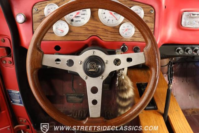 The interior showcases a cream ultraleather split bench seat surrounded by classic GMC dashboard styling. A Grant GT steering wheel mounted on a tilt column puts control at your fingertips, while Equus gauges keep tabs on vital stats. Modern amenities include power steering, air conditioning, and an AM/FM/Sirius/DVD receiver pushing tunes through 6x9 door speakers. The floor\'s creative license plate coverage adds unique personality, complemented by a classic gun rack.