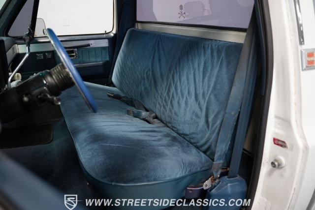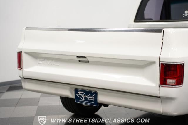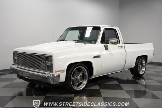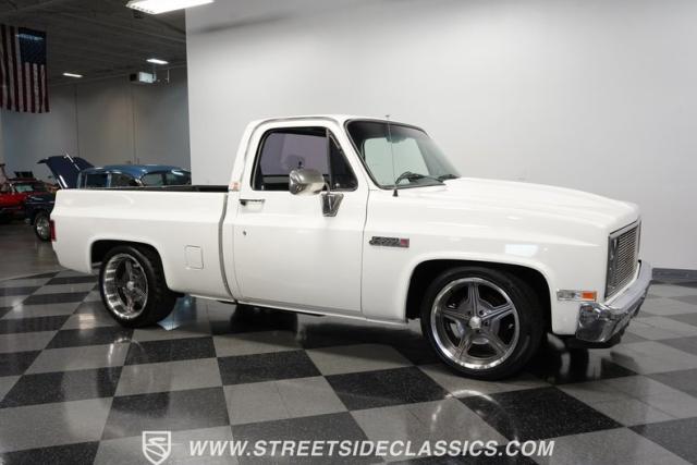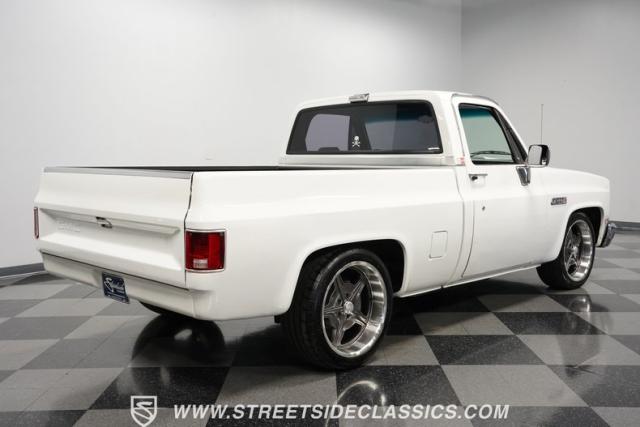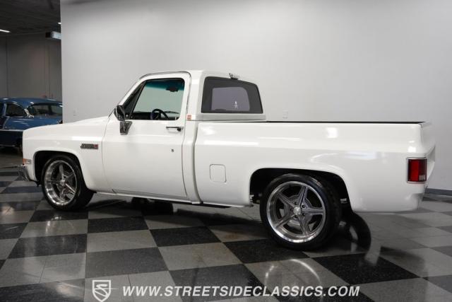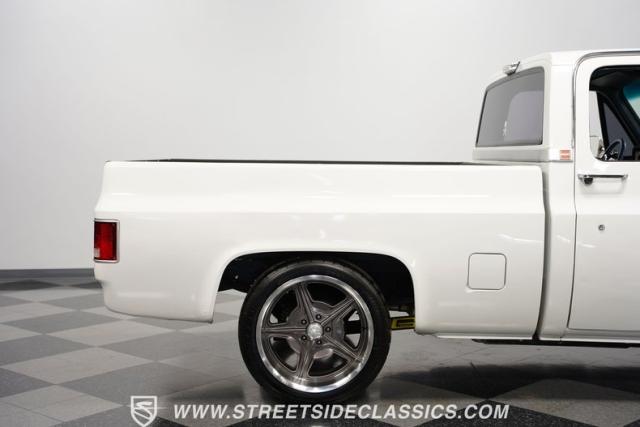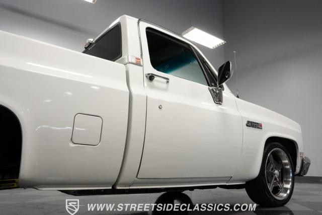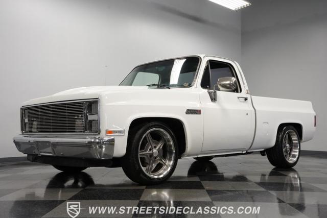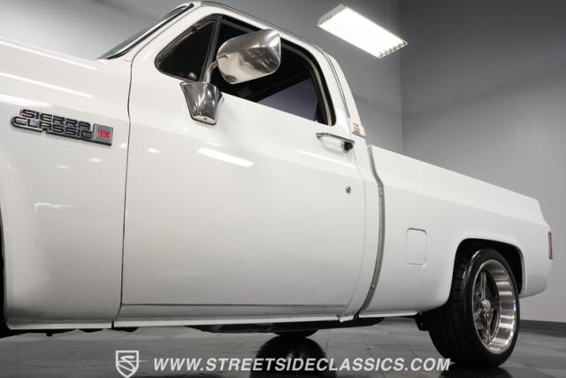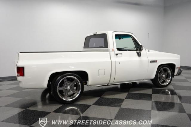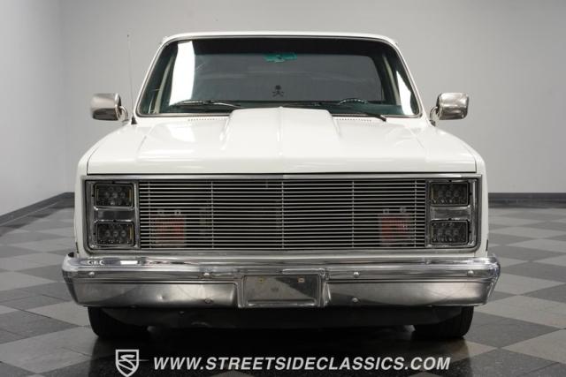 This 1986 GMC Sierra 1500 Classic rolls with authority through every street. The crisp white exterior builds on its muscular proportions, anchored by a metal cowl induction hood and precision-crafted 20-inch Billet Specialties wheels. The short bed configuration and spray-in bed liner multiply its capabilities. LED side marker lights and custom headlights with a distinctive grille broadcast pure American muscle.