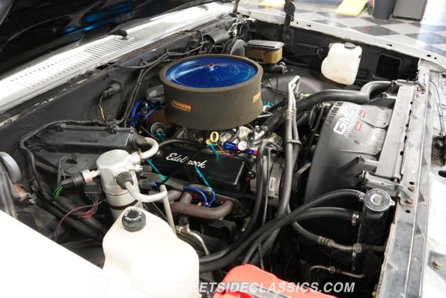 Under the hood, a 350 V8 crate motor from Mexico drives this powerhouse, paired with a TH350 automatic transmission. The setup features an Edelbrock 4-barrel carburetor, an Edelbrock aluminum intake manifold, and an oversized air cleaner for maximum performance. Hooker long-tube headers feed into a dual exhaust system with chambered mufflers, ensuring a deep, throaty roar. The suspension incorporates traction bars working with the GM 10-bolt rear end.