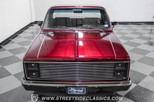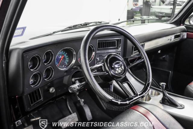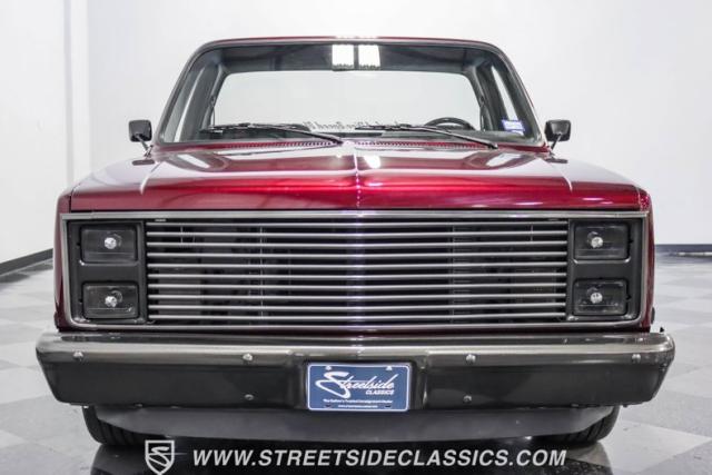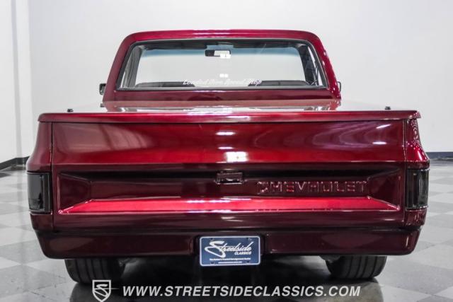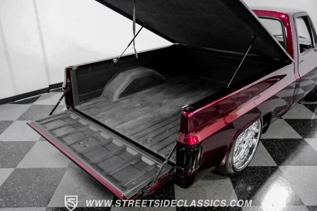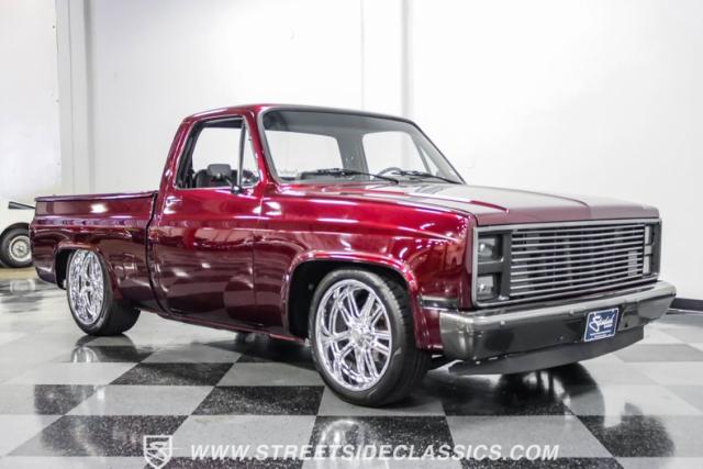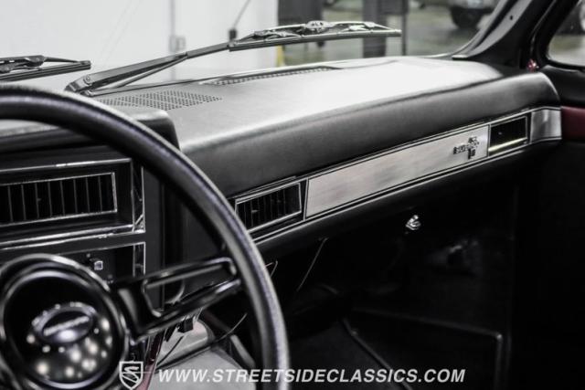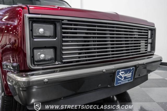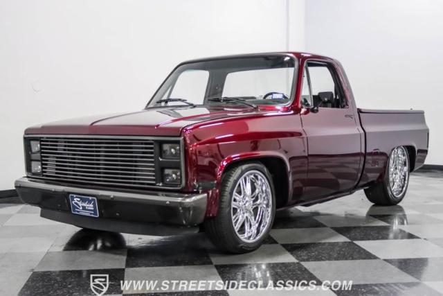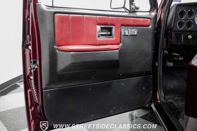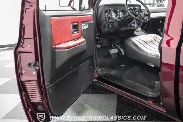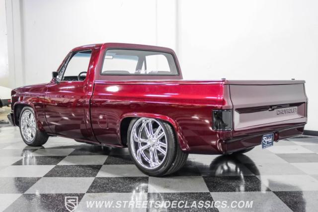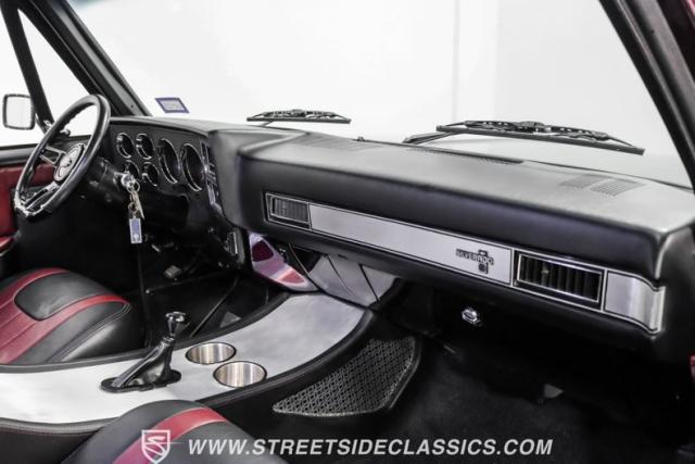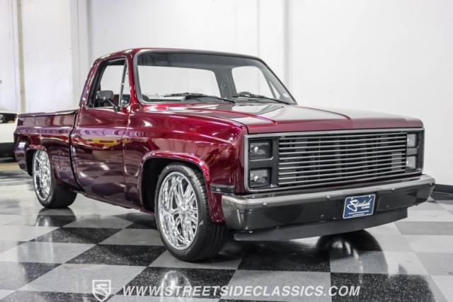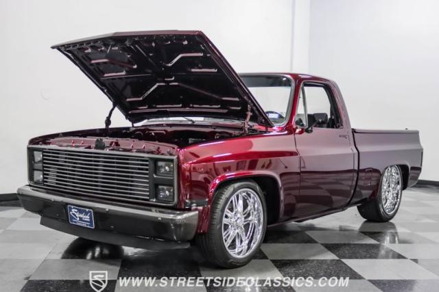 This 1987 Chevrolet C10 Silverado Restomod showcases American muscle reimagined. Its black cherry pearl paint gleams with a deep, rich luster that sets it apart from ordinary pickups. The sleek profile, accentuated by removed drip rails and custom panels, gives this C10 a modern edge. Rolling on 20-inch U.S. Mags up front and 22-inch in the rear, wrapped in Pirelli rubber, 245/45R20 front, 295/40R22 rear.