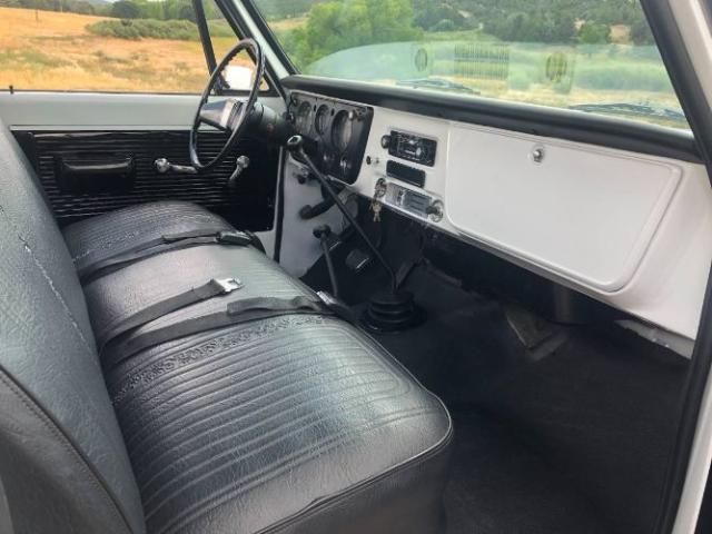 1970 Chevrolet 4x4 Restored Custom c/10 long bed New 350 engine with aluminum Edelbrock 4 barrel High rise intake manifold and a 600 cfm Edelbrock 4 barrel carburetor. New original style Ram Horn exhaust manifolds running into Dual Exhaust with old school cherry bombs. sounds great! 4 speed standard transmission with granny gear. Everything under the hood is New. All New belts, All New hoses, All New fluids, New spark plugs, New spark plug wires, New HEI Distributor, New Battery, New brake master cylinder, New shocks, New headlight switch, New turn signal switch, New windshield wiper switch, New windshield wiper blades, New windshield and seal, New choke cable, New heater duct, New ash tray, New mirrors All three, New door seals, New chrome door seal kick plates, New door felts and window rubbers, New heater control panel, New glove box insert, New Ignition switch, New starter, rebuilt manual steering gear box, This truck runs ,drives, steers and stops great. Starts on first crank and purrs!! Very fun to Drive! All lights and lenses are New and working, The frame on this truck was refinished in black enamel, Underneath cab and bed is all painted white, Beautiful Custom two tone paint job, Top color Dark Silver Metallic, bottom color Olympic White, with a Red pin stripe breaking up the two colors, all three colors are painted on and under the clear coat, Brand New Custom Billet Grill, Brand New Bumpers painted Dark Silver to match the top color and rims, also New bumper bolts and brackets, Brand New KANATI MUD HUG M/T Tires 285/75/16 very aggressive Tread design, Steel Rally Rims painted Dark Silver Metallic to match top color and bumpers, all New Interior, New rubber flooring, New Dash pad, New Visors, New rear view mirror, New factory style seat upholstery, New gas pedal, New brake and clutch pedal rubbers, New upgraded Radio, That will hook up to all your new devises, New Custom built speaker box with two 400 watt 6x9s Raptor lined and mounted under seat.