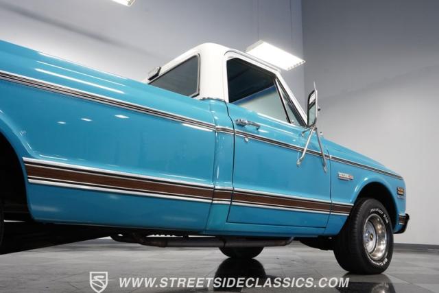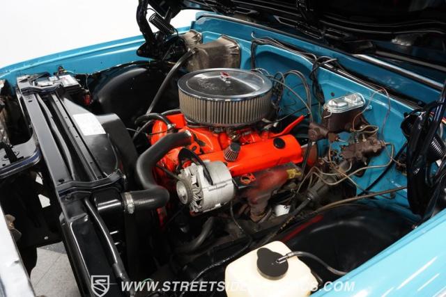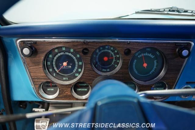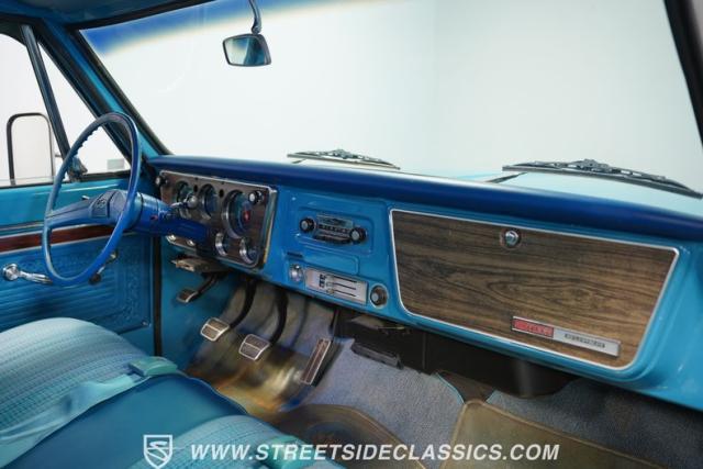 A 350 cubic inch V8 pairs with a 3-speed manual transmission for authentic muscle truck performance. The Quadrajet 4-barrel carburetor delivers consistent power across the RPM range. Front disc brakes and a GM 12-bolt rear end handle the stopping and putting power to the pavement. The control arm front suspension with coil springs works harmoniously with the rear coil spring setup for a balanced ride. Dual exhaust with aftermarket mufflers provides the proper V8 sound.