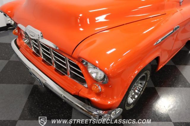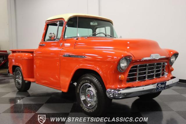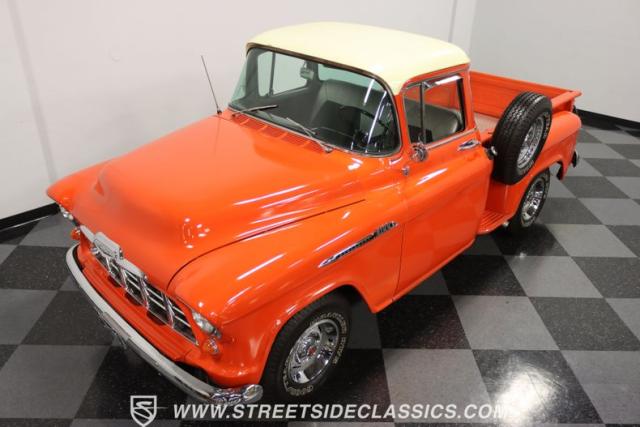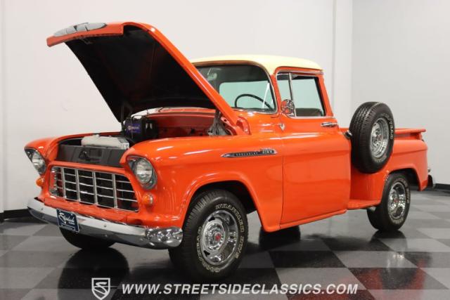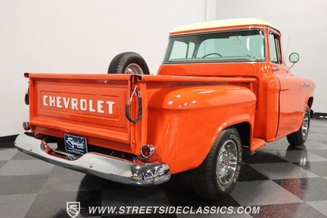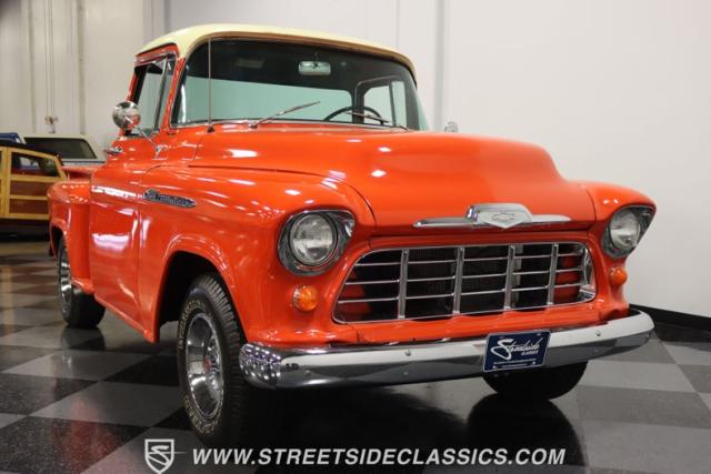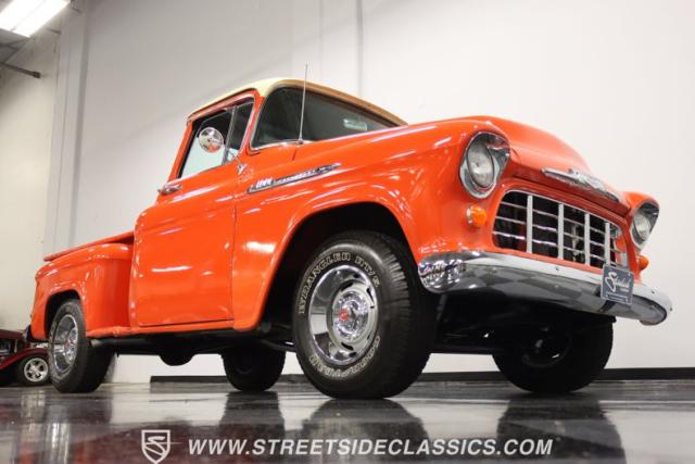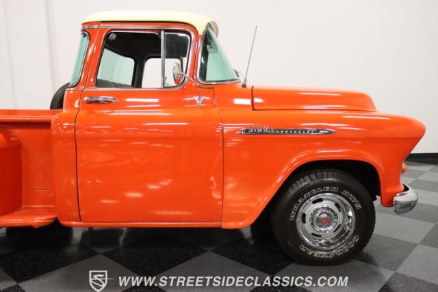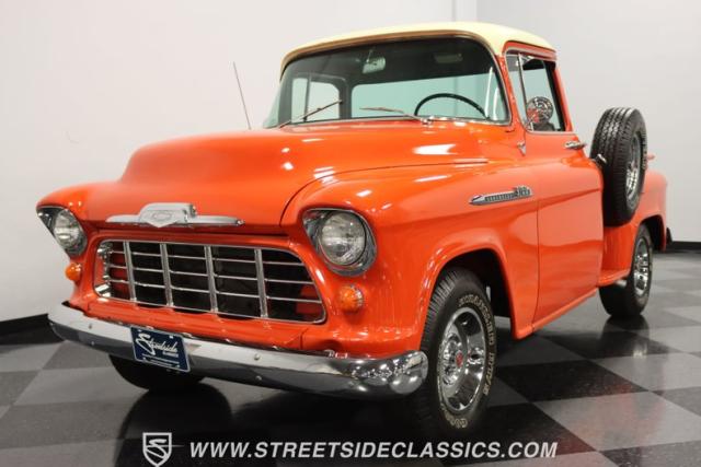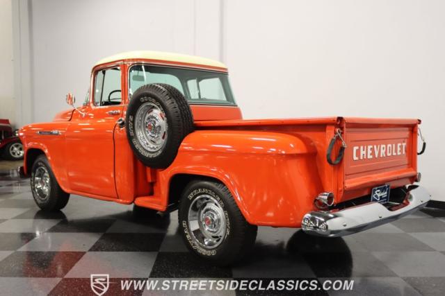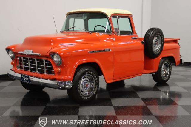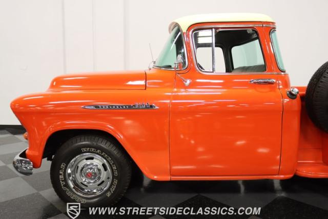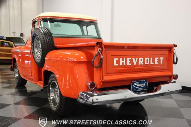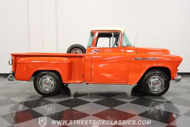 This 1956 Chevrolet 3100 Big Window commands attention with its bold Gypsy Red paint and Shoreline Beige accents. While the paint may not be concours-perfect let\'s call it a \"five-footer\" it adds an undeniable patina of character. The diamond plate bed floor offers a touch of rugged, modern style that complements the truck\'s classic lines. Rally wheels and sizable 235/75R15 tires give it a strong, purposeful stance.