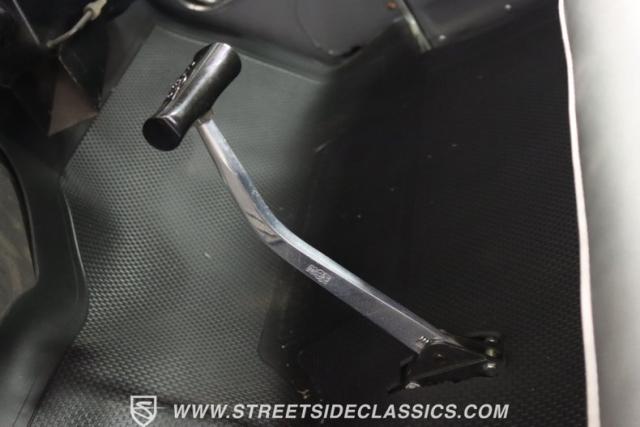 Inside, the no-nonsense gray interior exudes vintage truck charm. The vinyl bench seat and floor shifter speak to an era of utility and function, offering a refreshingly simple layout. This 3100 focuses on the essentials, creating a timeless workspace ready for any adventure.