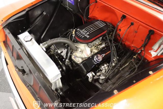 It\'s packing a surprise a legendary 383 Stroker V8 now calls this engine bay home. Fed by an Edelbrock carb and intake, it promises a serious kick in the pants. A TH400 3-speed automatic means smooth power delivery, all backed by an aluminum radiator and electric fan to keep things cool. The rumble from those Flowmaster mufflers hints at the power on tap, and a stout 10-bolt rear axle stands ready to handle it.