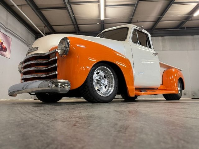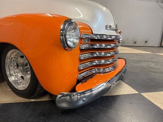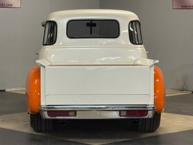 Painted a beautiful Diamond White with Tennessee Orange fenders. The front bumper chrome is like new. Custom rear bumper with tail lights built in, chrome is like new. Chevrolet logo step plates on running boards. The door handles are like new, dual outside mirrors like new. All glass and rubber is like new, custom tailgate. Chrome grill and headlight trim is like new. The hood emblems and trim is like new. The rubber looks good, front bumper filled and painted Orange, center line wheels Convo Pro series front & back like new. The BF Goodrich tires in front 205/60R15, BF Goodrich Sport truck tires in rear LT315/70R15 like new. Custom wheel tubs painted Diamond white to match truck. Gas tank filler cap in bed. Attention getter!