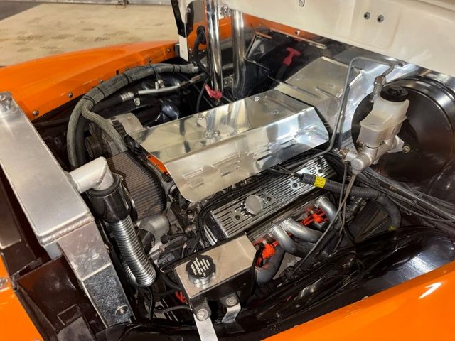 Powered by a tuned port engine with automatic transmission. There are chrome valve covers, custom stainless cover, K&N air filter with chrome front cover, aluminum radiator with electric fan, Coolflex chrome hoses top and bottom. Power steering, HPC headers, stainless overflow tank, power front disc brakes, 9" Ford rear end cut down, coilovers in rear, dual exhaust. Bowtie stainless exhaust tips, Mustang II type front end with tubular A-Arms upper and lower. Drives and handles great. Runs good! Visit our website at www.ecoastcc.com for more info.