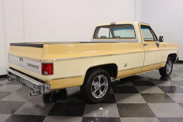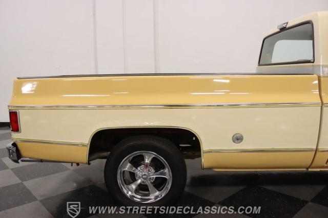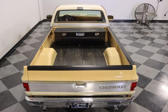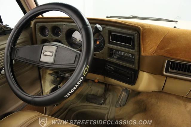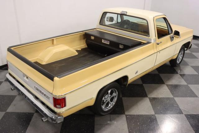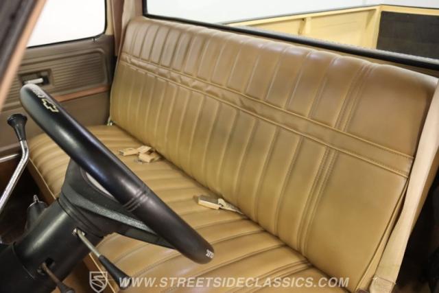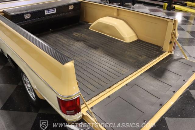 The best pickups have good stories. The one we\'re told on this one is that it was with its first owner for 41 years. And when he gave it up, he sold it to an admiring neighbor. That\'s the entire ownership history! It\'s this kind of known lineage and respected life that has led the owner to believe the low odometer may even reflect the full actual mileage. It\'s also this kind of reverence that lets you know the upgrades were done with care. The factory-correct Santa Fe Tan and Cream was given a nice respray in 2020. It has a clean and complete look where the full Silverado trim separates the intricate two-tone along the body and roof. And the clean look of the body lines, grille, tailgate, and bumpers gives it the right vintage style. Those 17-inch Ridler wheels and polished dual exhaust tips tell you that there have been the right investments to make sure this is a better cruiser. But part of owning a proper truck is also making sure it stays useful. That\'s why there\'s thick rubber protecting the bed floor, inner tailgate, and bed sides. There\'s even a locking toolbox for handy items.