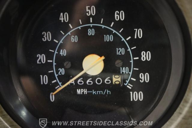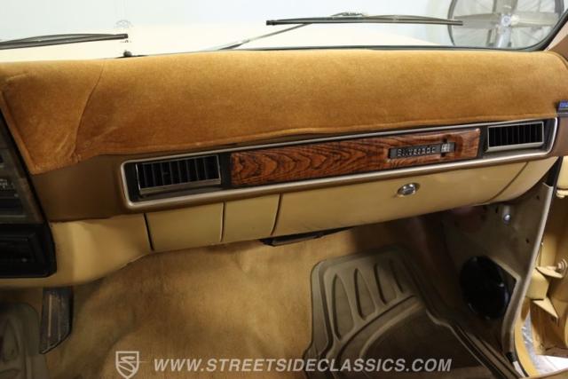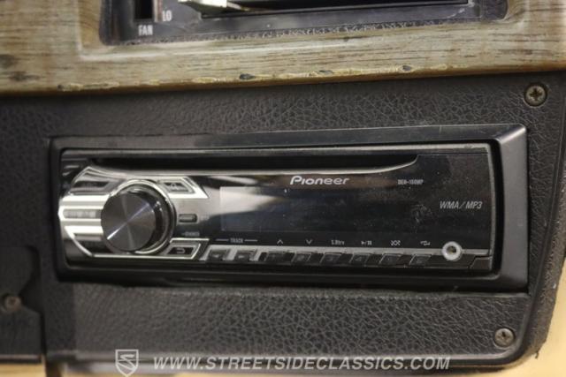 The tan interior is inviting. There\'s a clean/classic look to the seat, the dash has a nice cover, the carpeting is plush, the door panels look newer, and there\'s some tasteful wood-like trim. It doesn\'t strive for perfection, and we even bet some of the details were left worn-in just to give you that proper classic feel. But this one wants to make sure it lives up to its true cruiser attitude with the right long-haul features. This includes a rebuilt air conditioning system, an upgraded AM/FM/CD stereo with aux input, and a tilt steering column to give you a commanding view of the wraparound gauge panel.
