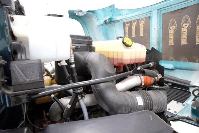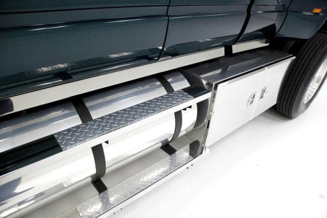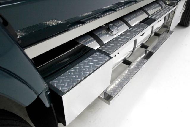 A flip forward of the front hinged fiberglass hood reveals a Cat 3116 6.6 liter inline 6 cylinder powerhouse capable of producing 205 horses. It is fed diesel by EFI and sports an Allison AT545 4-speed automatic transmission on back. A heavy duty rear axle keeps your rolling down the highway.
