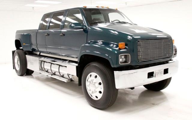 Holy hooks Batman! Gracing our Hallowed Halls and flirting with our Max Headroom ceiling height, we give you a 1997 GMC C6500 truck. Dual rear wheels and tires, a grille height that allows you to stare down the headlights eye to eye, and luxury comfort inside the crew cab, then you need to take a serious look at this monster in pickup bedded form. Built as a promotion truck for Speed Unlimited Performance Centers, a staple for Hot Rodders in the Washington DC, Maryland and Virginia area. Quite a BIG statement! All with a mere 5,961 miles clocked on her/him, it! (Im trying to be politically correct which is IMPOSSIBLE These days.). Let\'s just say it identifies a BIG!