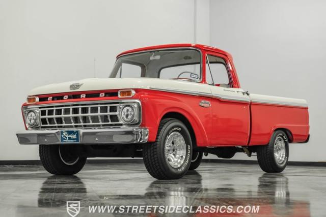 This 1965 Ford F-100 combines classic truck styling with thoughtful upgrades. Its potent 352 V8, manual transmission, and eye-catching red and white color scheme make it perfect for cruising or showing off. Call today!