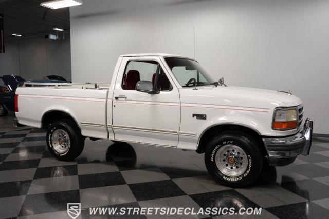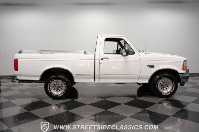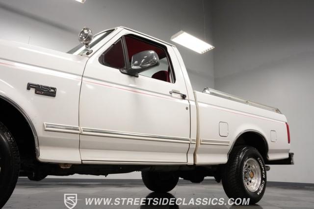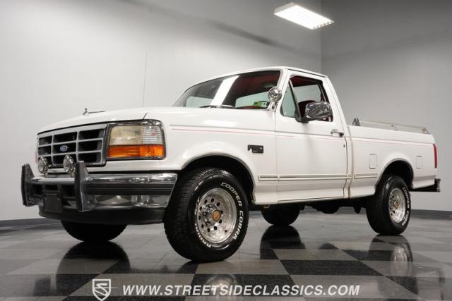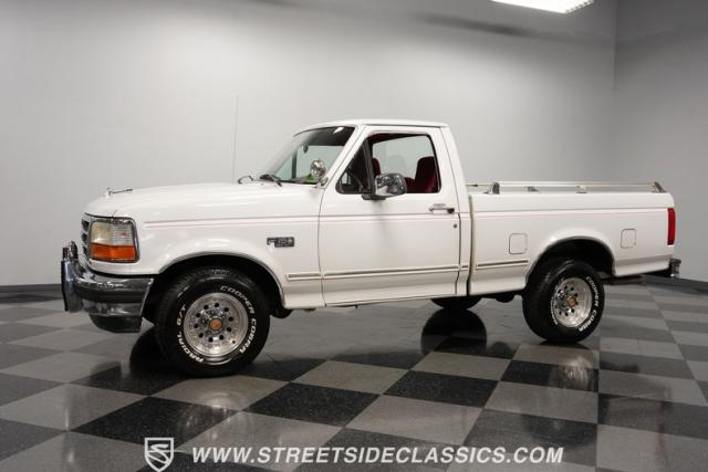 While modern pickup trucks certainly have their appeal, sometimes the simplicity and ruggedness of a throwback work truck are all you need. This 1996 Ford F-150 XLT is a stellar example of the 9th generation of the Blue Oval\'s best-selling truck. It also has the \"Henry County Package\" installed at a local dealer, which includes a spotlight, fog lights, bumper overriders, and bed rails. Astute historians will notice a hood ornament from a Ford about three decades younger.